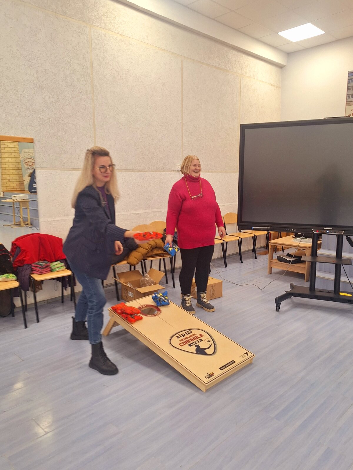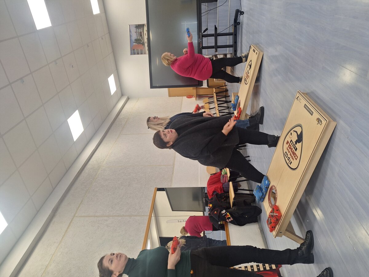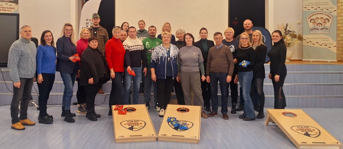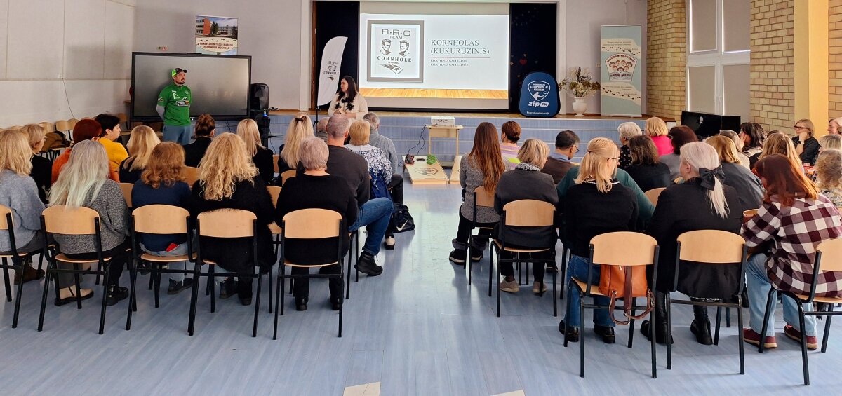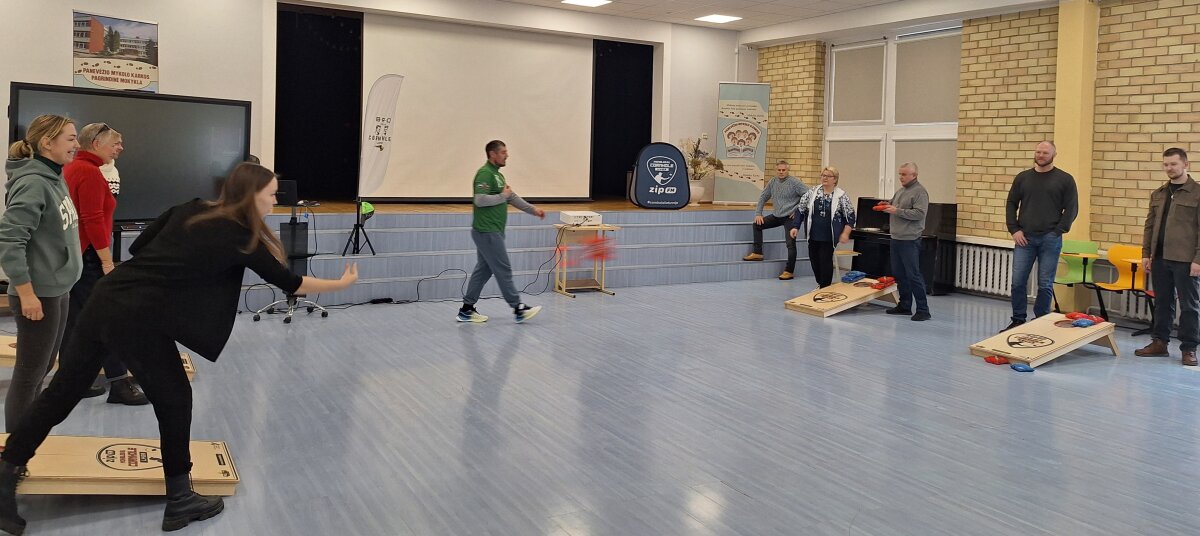 Mūsų mokykloje lankėsi svečiai lektoriai, kurie supažindino mokytojus su visame pasaulyje populiarėjančiu „Cornhole“ žaidimu. Šis žaidimas, kilęs iš JAV, pastaraisiais metais vis labiau įsitvirtina ir Lietuvoje. Jis ne tik smagus, bet ir lavina koncentraciją, tikslumą bei strateginį mąstymą.