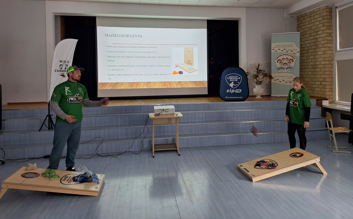 Įkvėpti lektorių pasakojimų ir pavyzdžių, mokykloje startuos „Cornhole“ lyga, kurioje dalyvaus tiek mokiniai, tiek mokytojai. Ši iniciatyva padės ne tik smagiai praleisti laiką, bet ir ugdyti fizinio aktyvumo įgūdžius, lavinti rankų-akių koordinaciją bei skatinti bendruomeniškumą.
