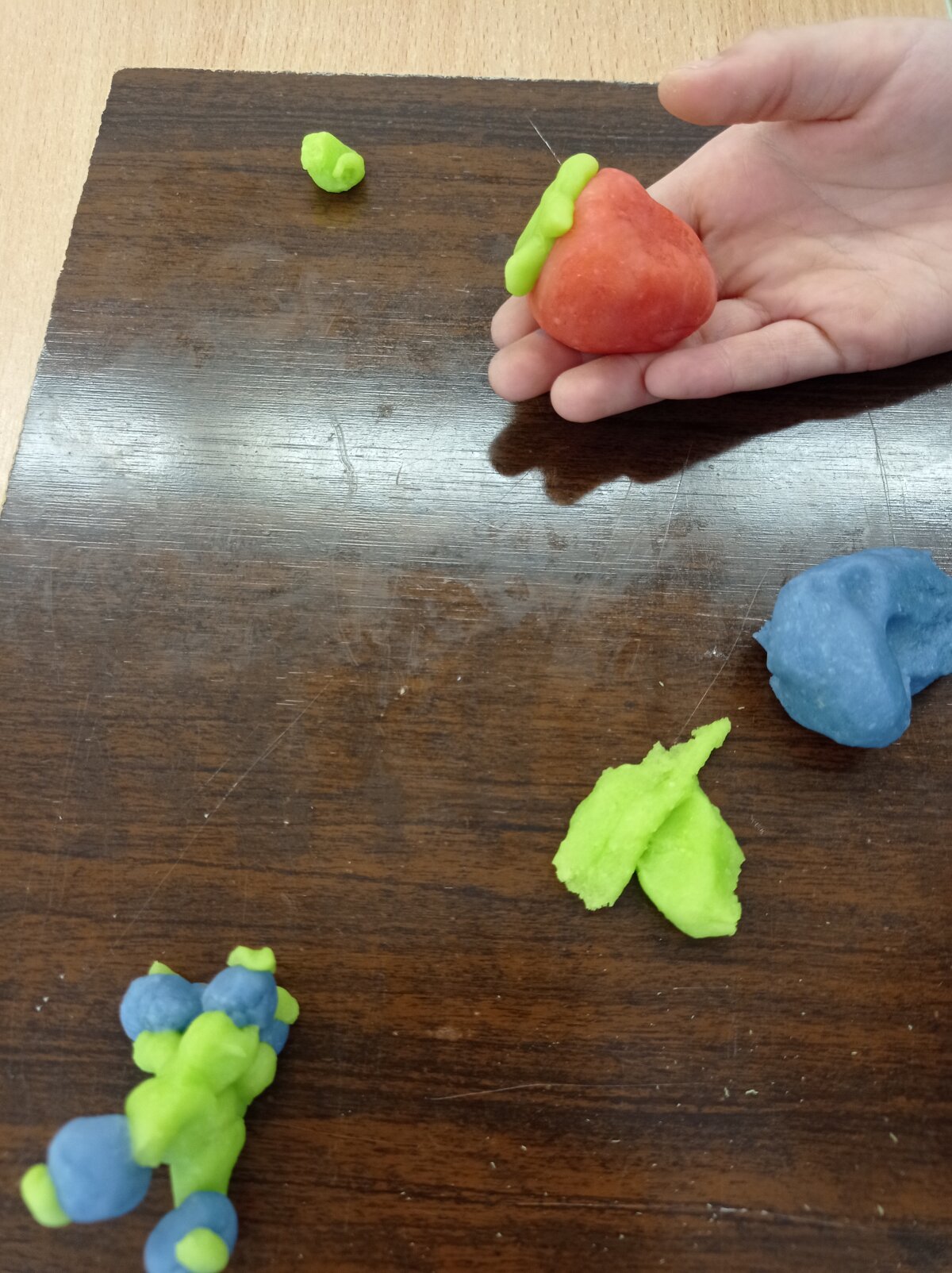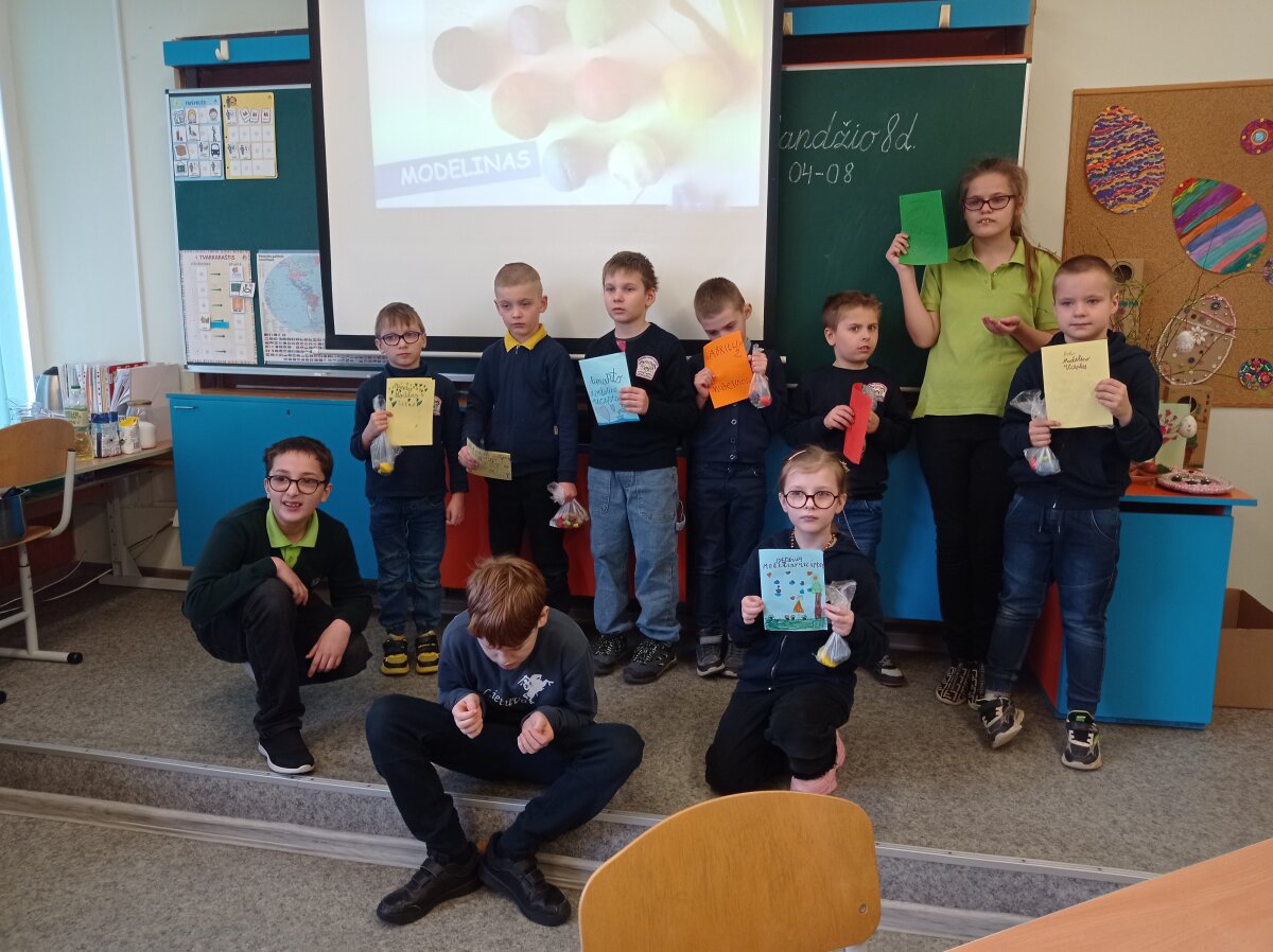 Šiandien 1b klasės mokiniai keliavo į Beržų progimnaziją pas ketvirtokus. Smagiai leidome laiką gamindami stebuklingą išmanųjį plasteliną. Jis yra minkštas ir šlapias kaip slaimai, bet priešingai nei slaimus, jį galima lengvai minkyti ir jis išlaiko savo formą. Taip pat, kaip ir su minkštu plastilinu, galima nusiraminti jį spaudant, klausantis šliuksėjimo ir formuojant. Jam pasigaminti reikia labai nedaug tik miltų, druskos, vandens, aliejaus, citrinos rūgšties, dažų ir kantrybės. Gaminant plasteliną visi kartu dėjome į puodą reikiamas medžiagas.J as maišėme ir net virėme ant elektrinės viryklės. O dar įdėjom dažų. Ir vėl minkėm, minkėm. OI kaip smagu kai plastelinas nusidažė įvairiomis spalvomis. O jei dar kvapų įdėtume? Tada ir nulipdytos braškės, obuoliai, bananai šilauogės pakviptų. Šios terapijos užsiėmimai – mažina nerimą, lavina saviraišką, kūrybiškumą.