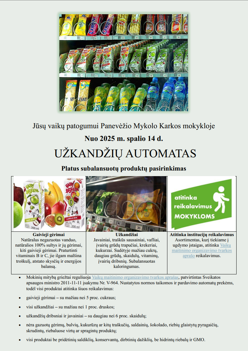 Nuo 2025 m. spalio 14 d. Panevėžio Mykolo Karkos mokykloje – naujiena!