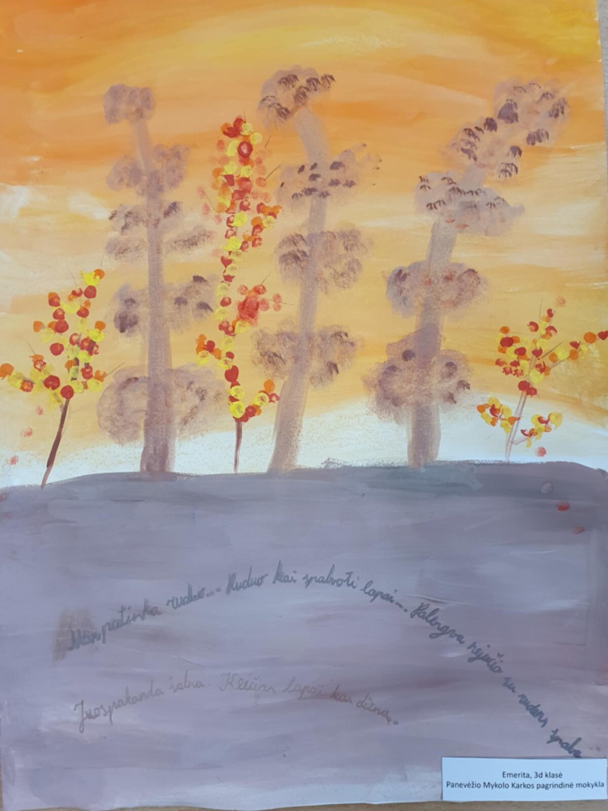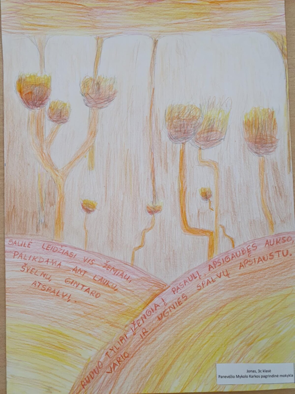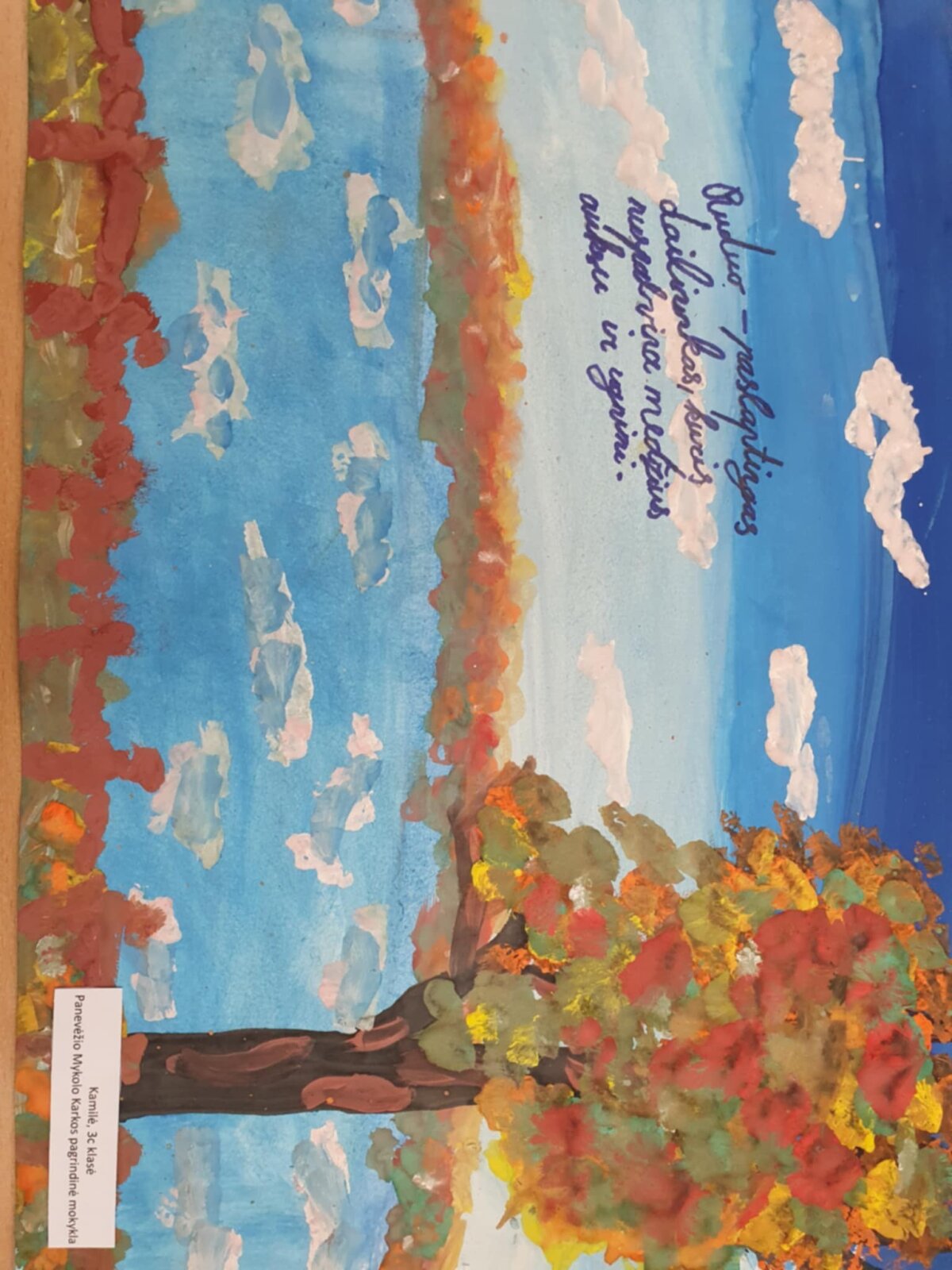 Įkvėpti šio žymaus lietuvių menininko darbų, trečiokai stengėsi pažvelgti į rudens gamtos grožį dailininko akimis. Mokiniai interpretavo rudens nuotaikas per M.K.Čiurlioniui būdingą simbolizmą, spalvų dermę ir paslaptingą atmosferą.