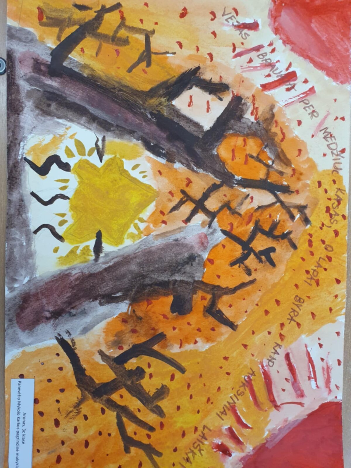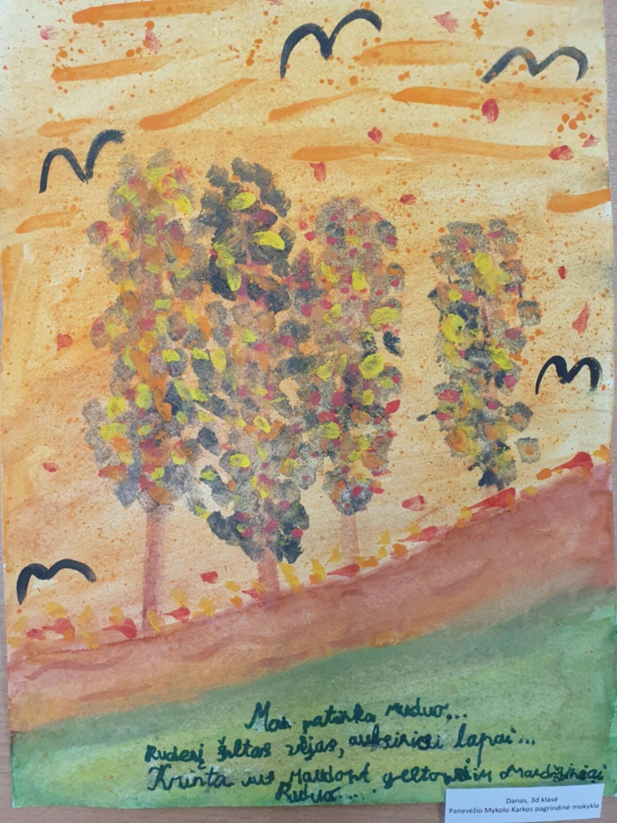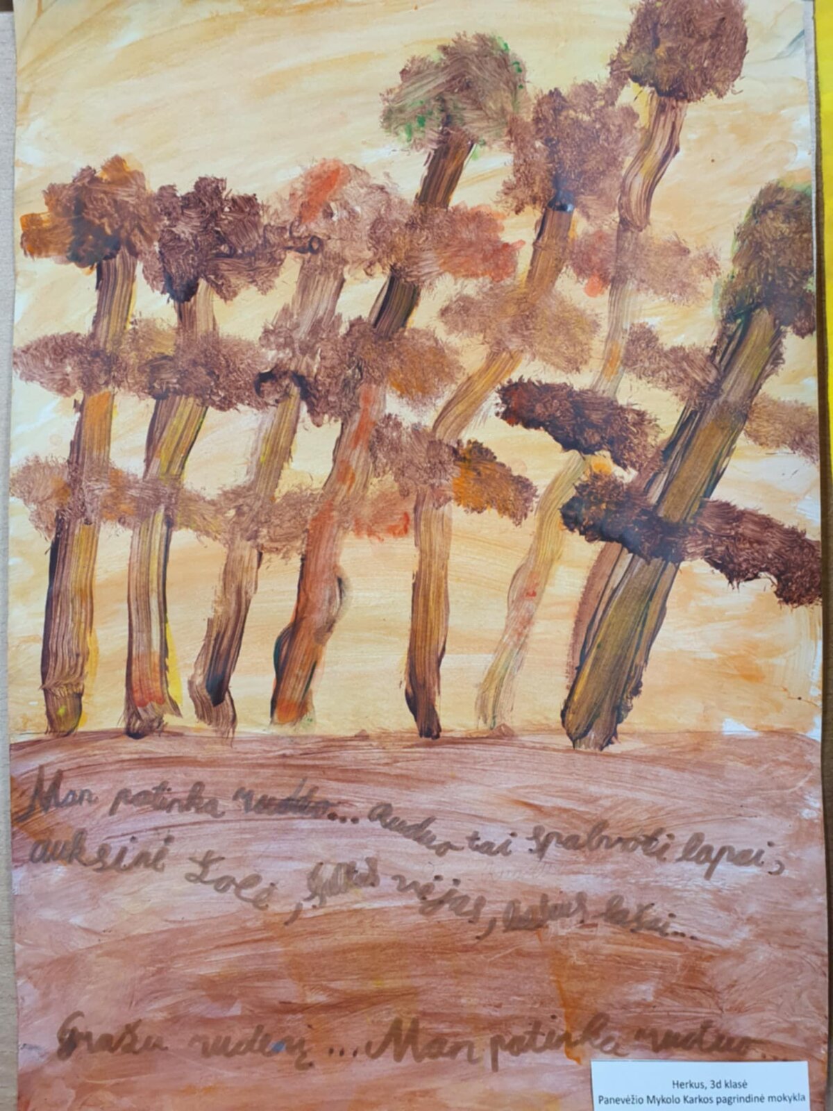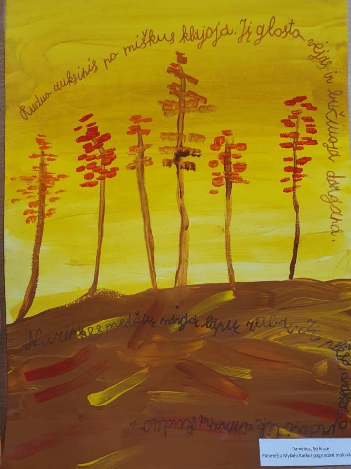 Įkvėpti šio žymaus lietuvių menininko darbų, trečiokai stengėsi pažvelgti į rudens gamtos grožį dailininko akimis. Mokiniai interpretavo rudens nuotaikas per M.K.Čiurlioniui būdingą simbolizmą, spalvų dermę ir paslaptingą atmosferą.