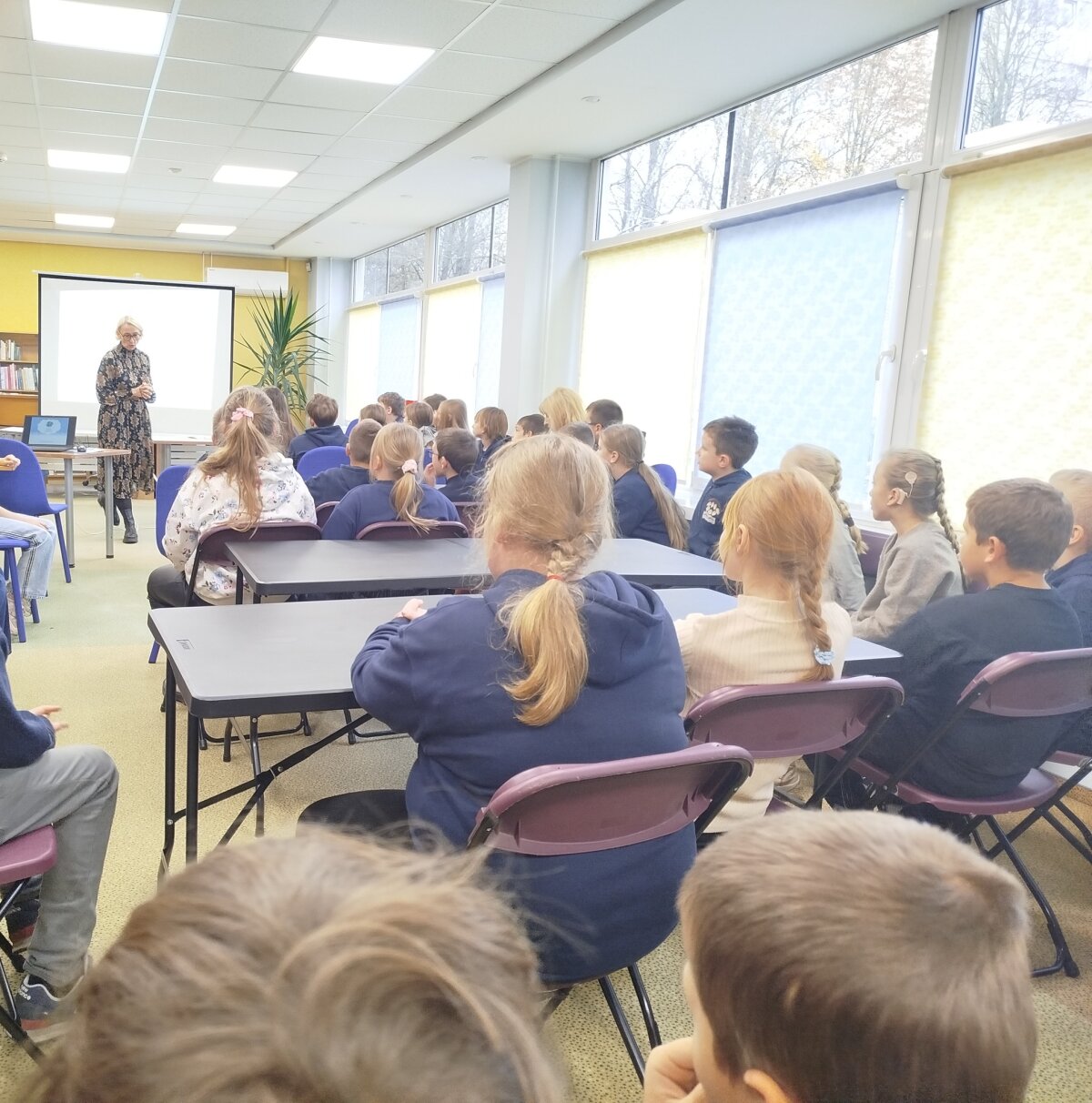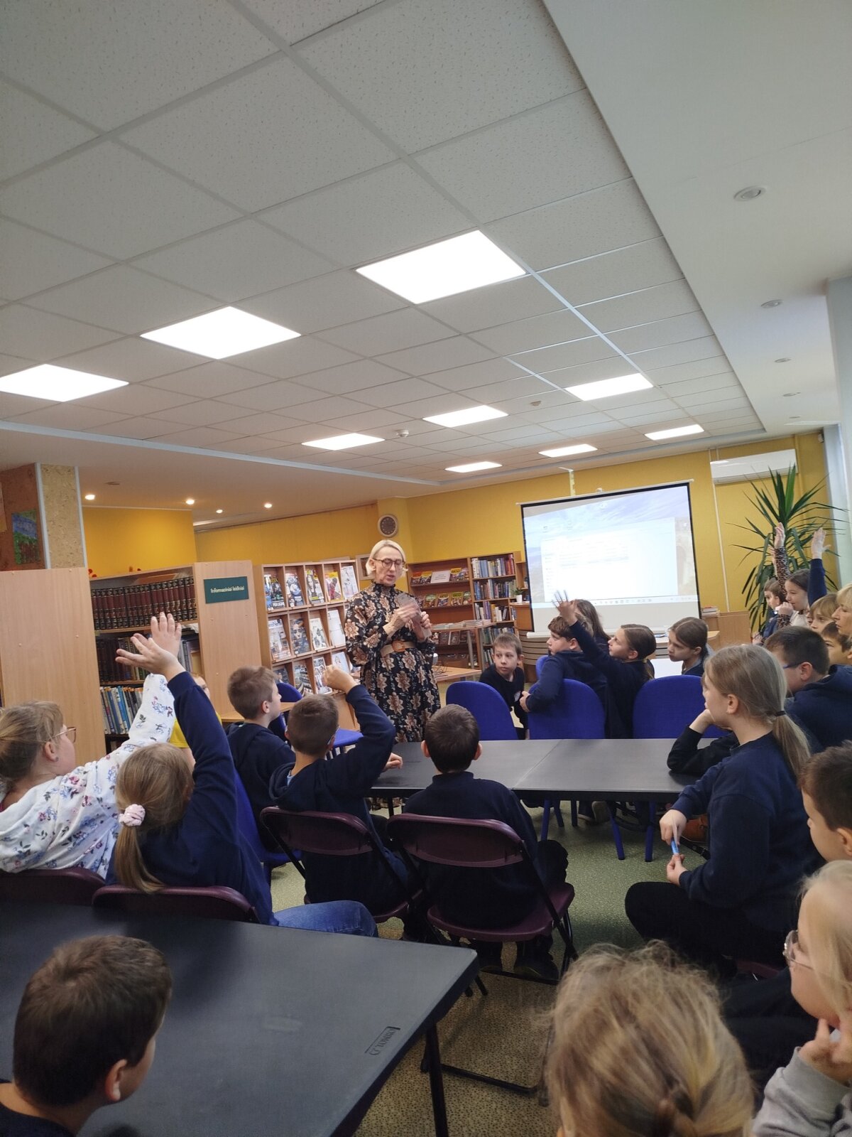 Šiandien 4c ir 4d klasių mokiniai lankėsi vaikų bibliotekoje „Žiburėlis“, kur susitiko su leidyklos „Terra Publica“ direktore ir vaikų knygų autore D. Kandrotiene.