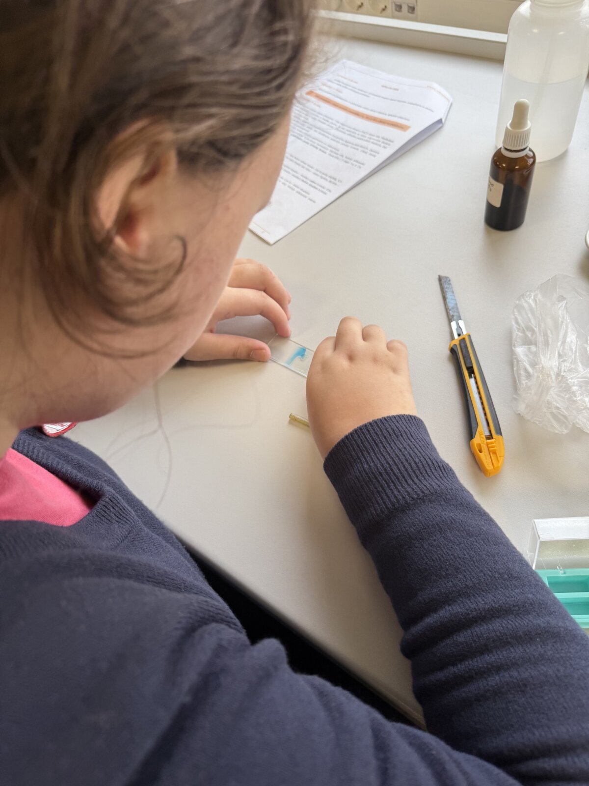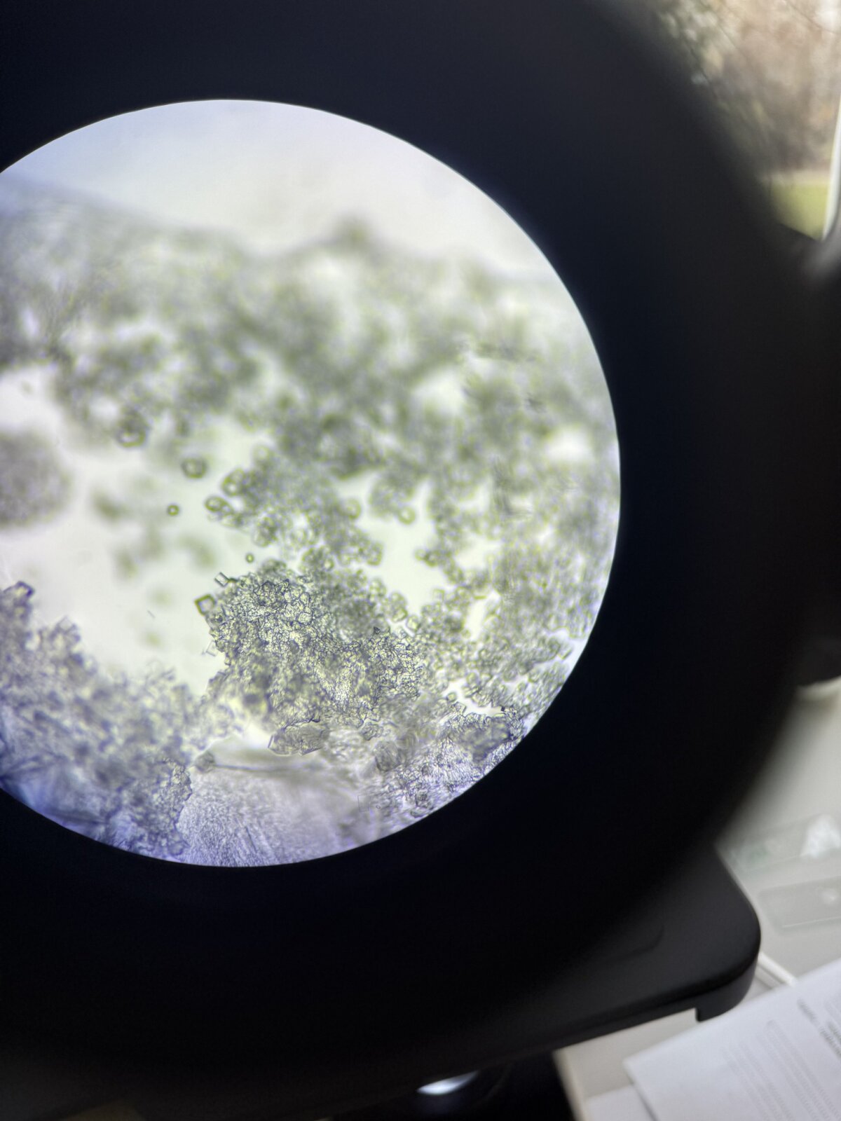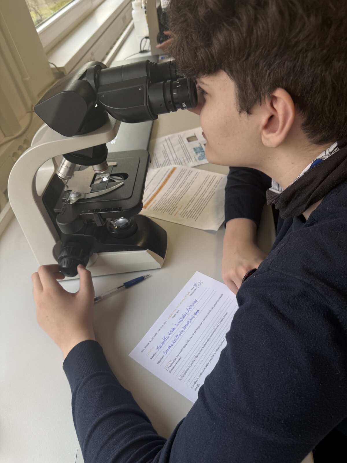 STEAM centre kartu su biologijos mokytoja Dovile Miškinyte jaunieji mokslininkai tyrinėjo, kaip gimsta kristalai, žiūrėjo į jų grožį pro mikroskopą ir patys atliko bandymus.