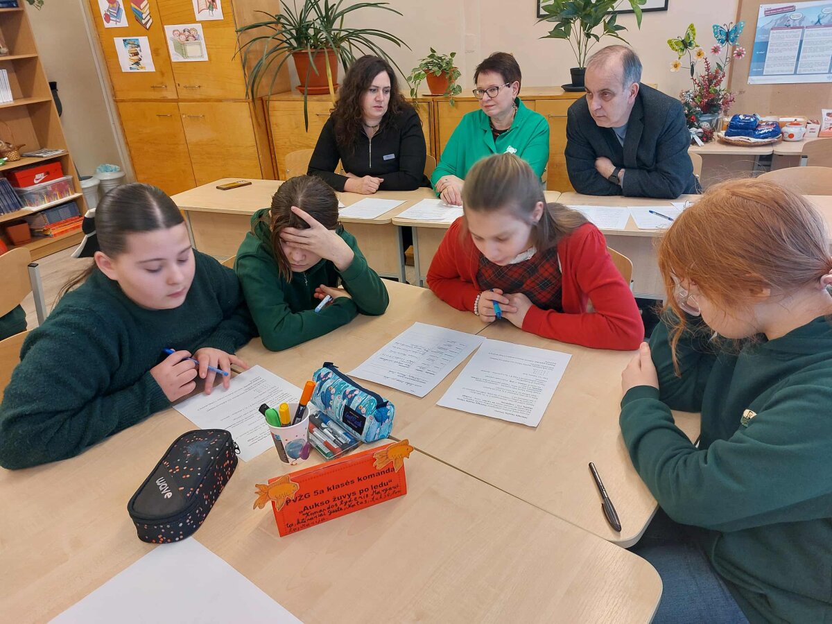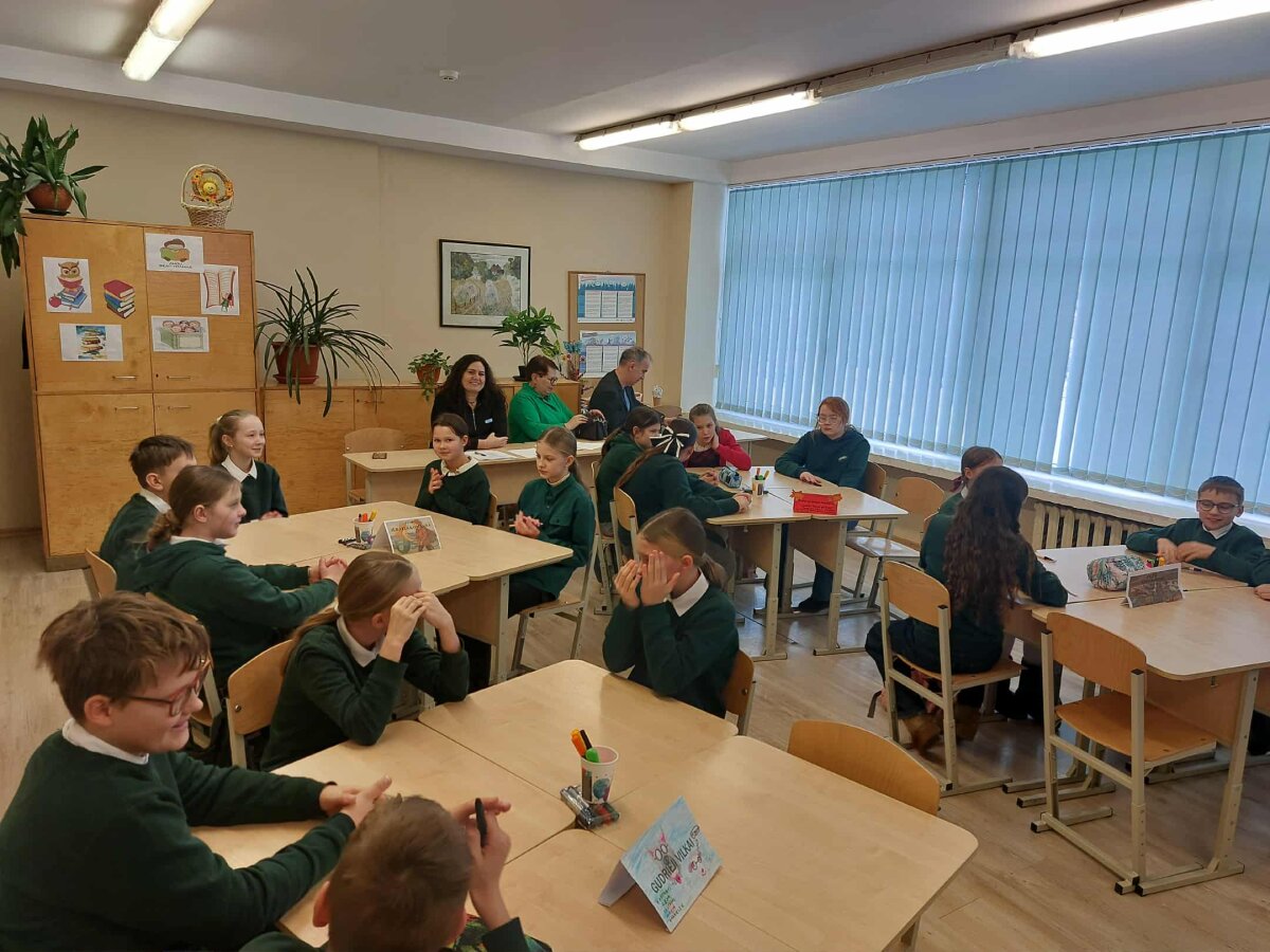 Mokykloje svečiavosi Vytauto Žemkalnio gimnazijos penktokai. Jie dalyvavo integruotoje lietuvių kalbos ir matematikos pamokoje „Pasakų matematika“. Gimnazistams netradicines veiklas organizavo lietuvių kalbos mokytoja Sigutė Kvetkienė ir matematikos mokytoja Zita Vickuvienė.