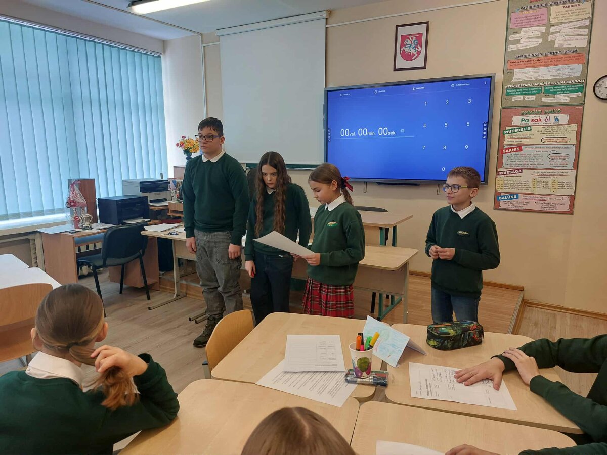 Susiskirstę į grupes ir jas pasivadinę pasakų veikėjų vardais, išradingai prisistatę, mokiniai kibo į darbą. Atlikdami įvairias integruotas ir kūrybinę užduotis, pasikartojo, ko pirmąjį pusmetį mokėsi iš lietuvių kalbos ir matematikos. Nuobodžiauti neteko, nes kiekvienos užduoties atlikimo laiką kontroliavo interaktyviosios lentos laikmatis.