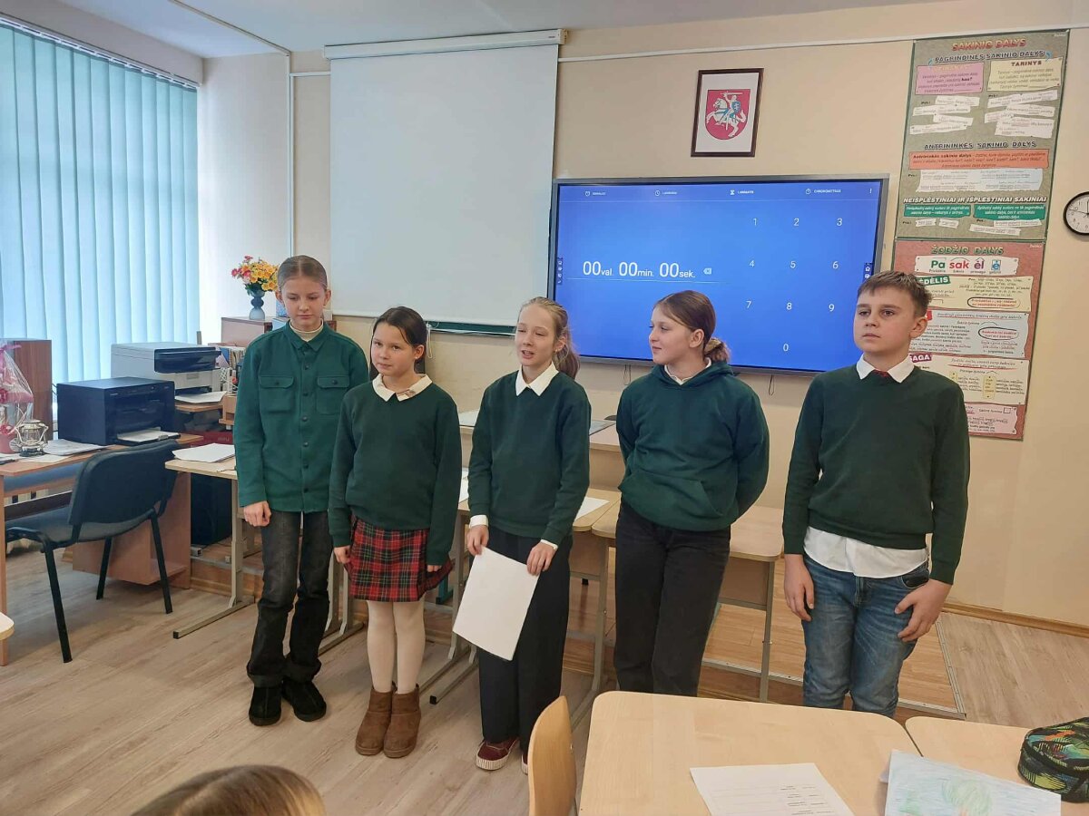 5d kl. mokiniai integruotoje lietuvių kalbos ir matematikos pamokoje tobulino sa... -
