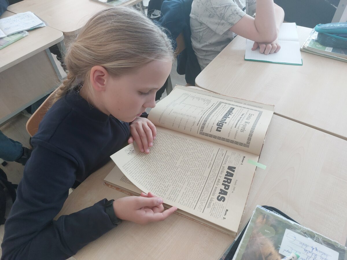 Šių pamokų metu mokiniai turėjo galimybę pavartyti fotografuotinį leidinį – 1889 m. „Varpą“, vieną iš tų laikraščių, kuriuos slapta gabeno ir platino knygnešiai.