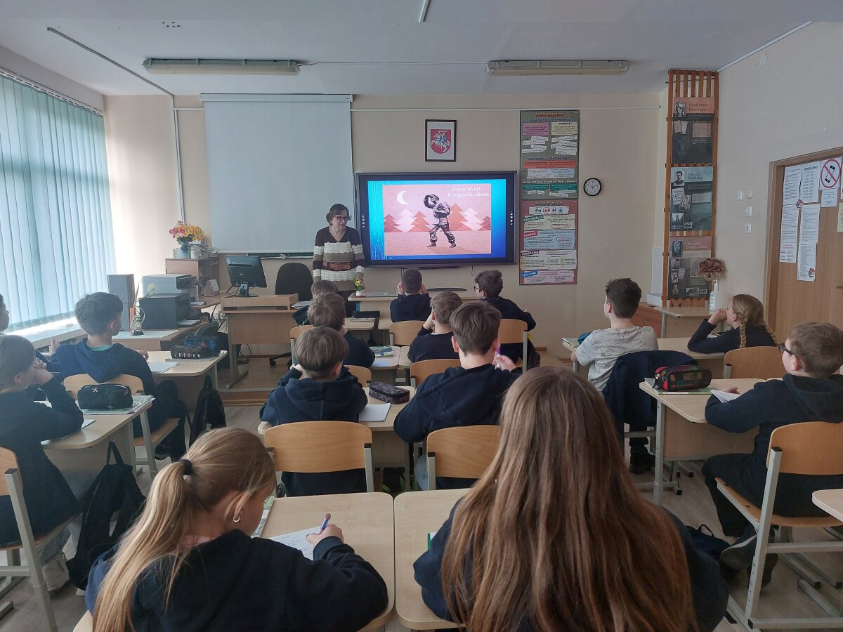 Kovo 16-oji Lietuvoje – Knygnešio diena. Šią dieną 5d ir 5e klasėse vyko netradicinės lietuvių kalbos pamokos „Kaip savo kryžių nešei tu knygą...“, skirtos šiai datai paminėti. Mokyklos bibliotekininkė mokiniams papasakojo apie lietuviškos spaudos draudimo laikotarpį, knygnešystės fenomeną ir reikšmę Lietuvoje.