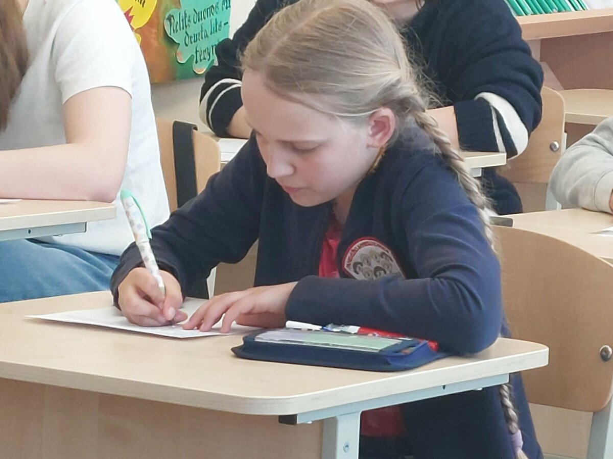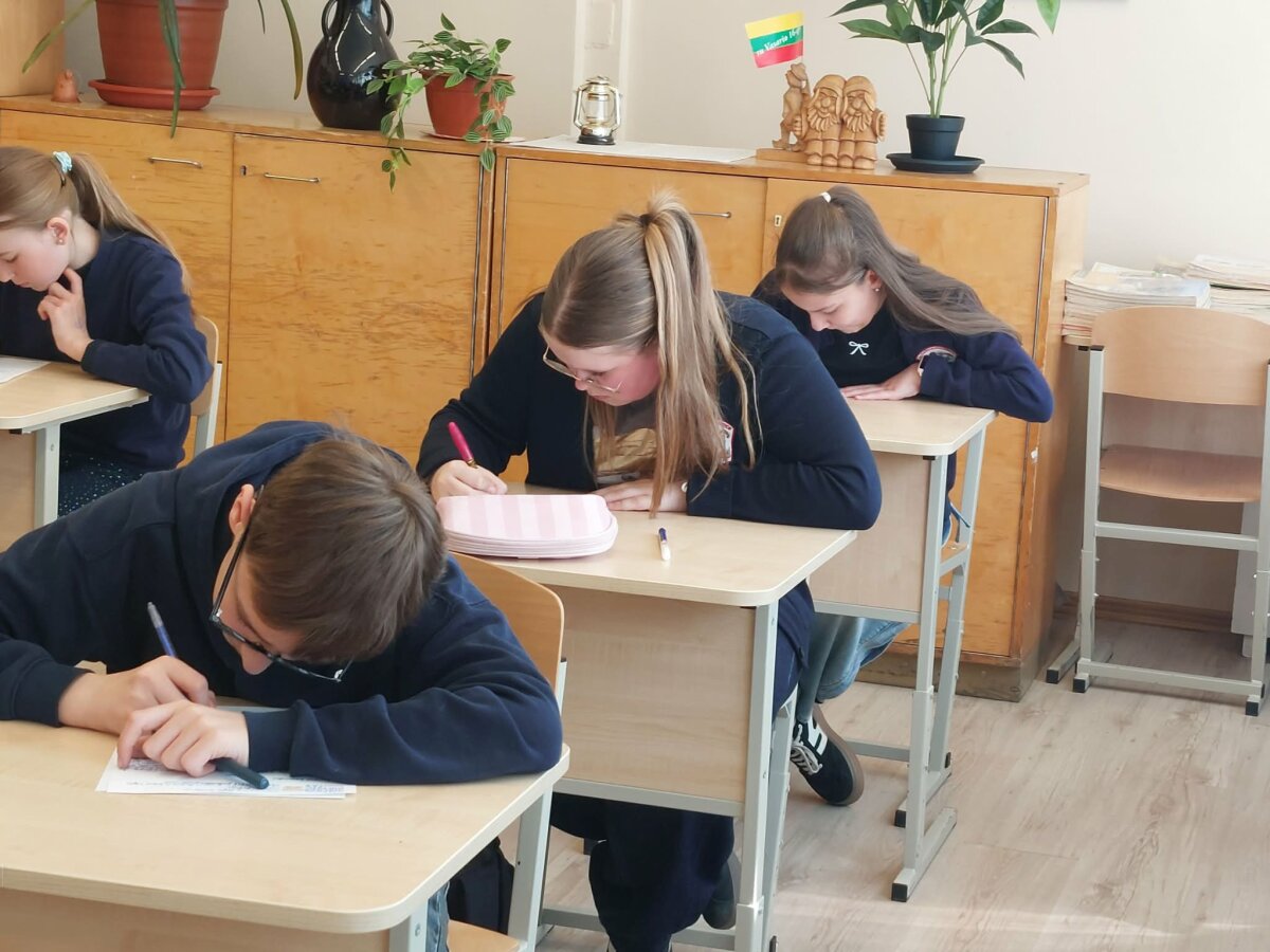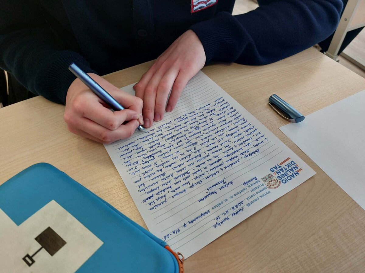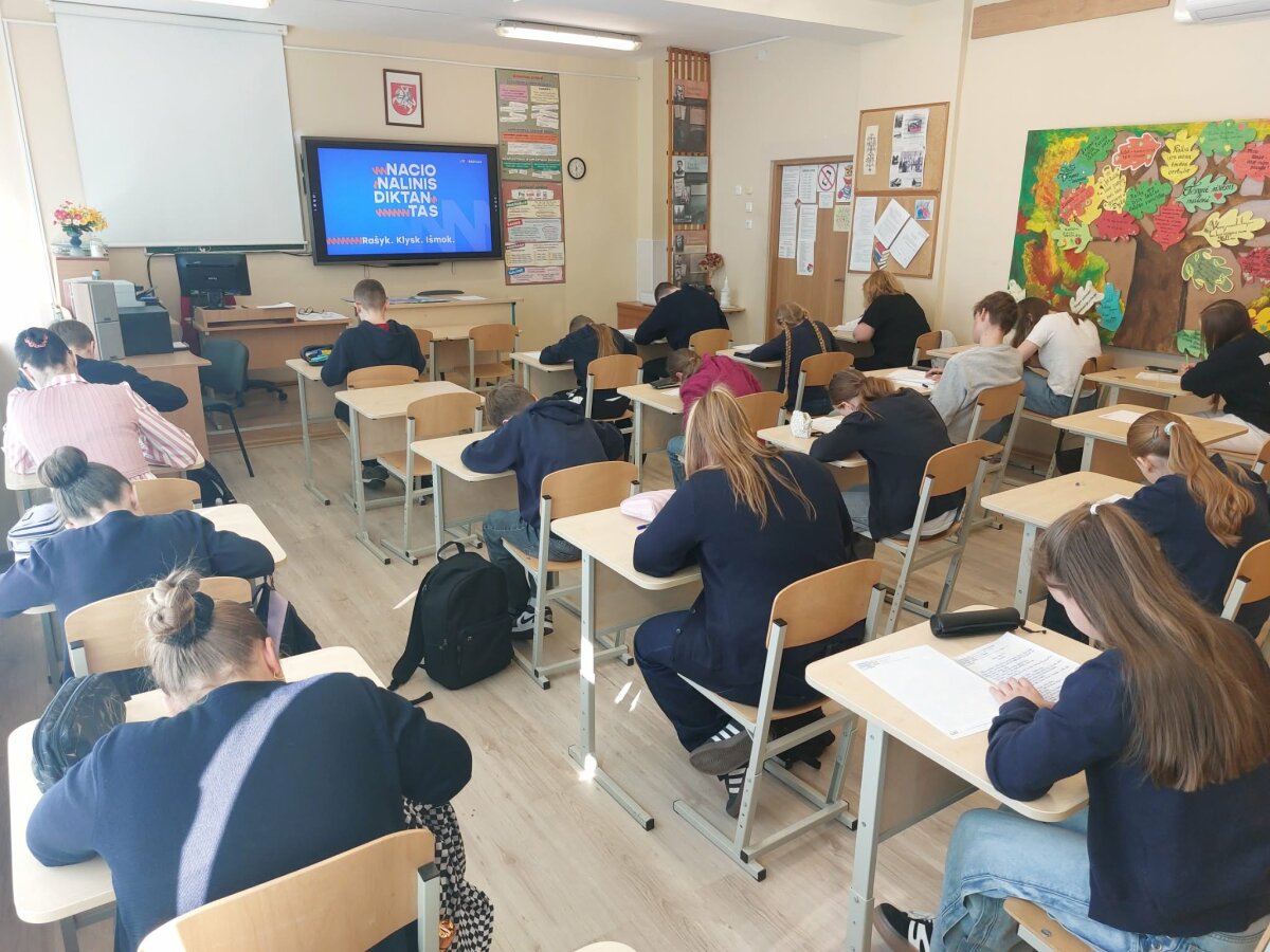 Šiemet jau 16-ą kartą vykusiame tarptautinio Nacionalinio diktanto rašymo konkurse, skatinančiame suaugusiųjų ir moksleivių raštingumą, mūsų mokykloje dalyvavo 18 asmenų: mūsų mokyklos pedagogų ir mokinių, taip pat svečių iš Panevėžio miesto. Vieni norėjo išbandyti savo jėgas, kiti – pasivaržyti. Visiems dalyviams tai buvo galimybė didžiuotis unikalia lietuvių kalba, pasitikrinti gebėjimą rašyti be klaidų, o jų padarius, išmokti ko nors naujo ir kitą kartą tokių pat klaidų nebekartoti. Darbai išsiųsti konkurso organizatoriams. 100 geriausiai parašiusiųjų bus pakviesti į Vilnių dalyvauti finale. Linkime sėkmės mūsų mokykloje rašiusiesiems.