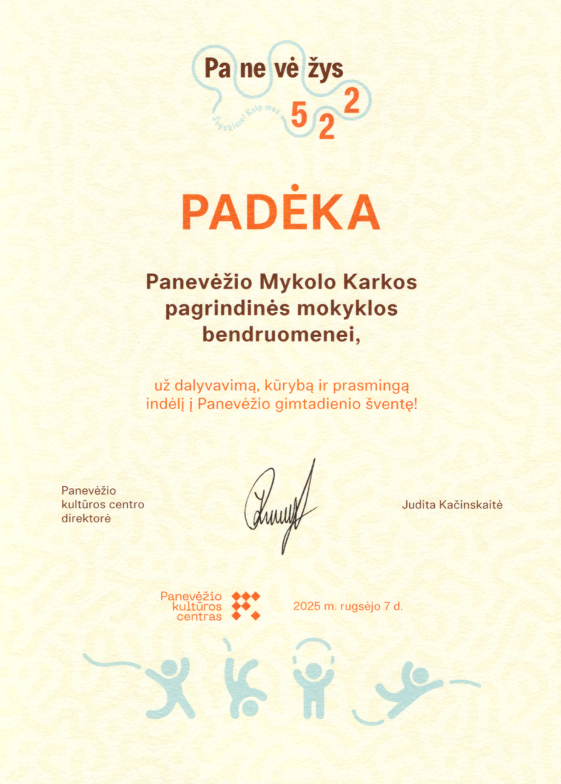 Džiaugiamės Panevėžio Mykolo Karkos pagrindinės mokyklos pasiekimais -