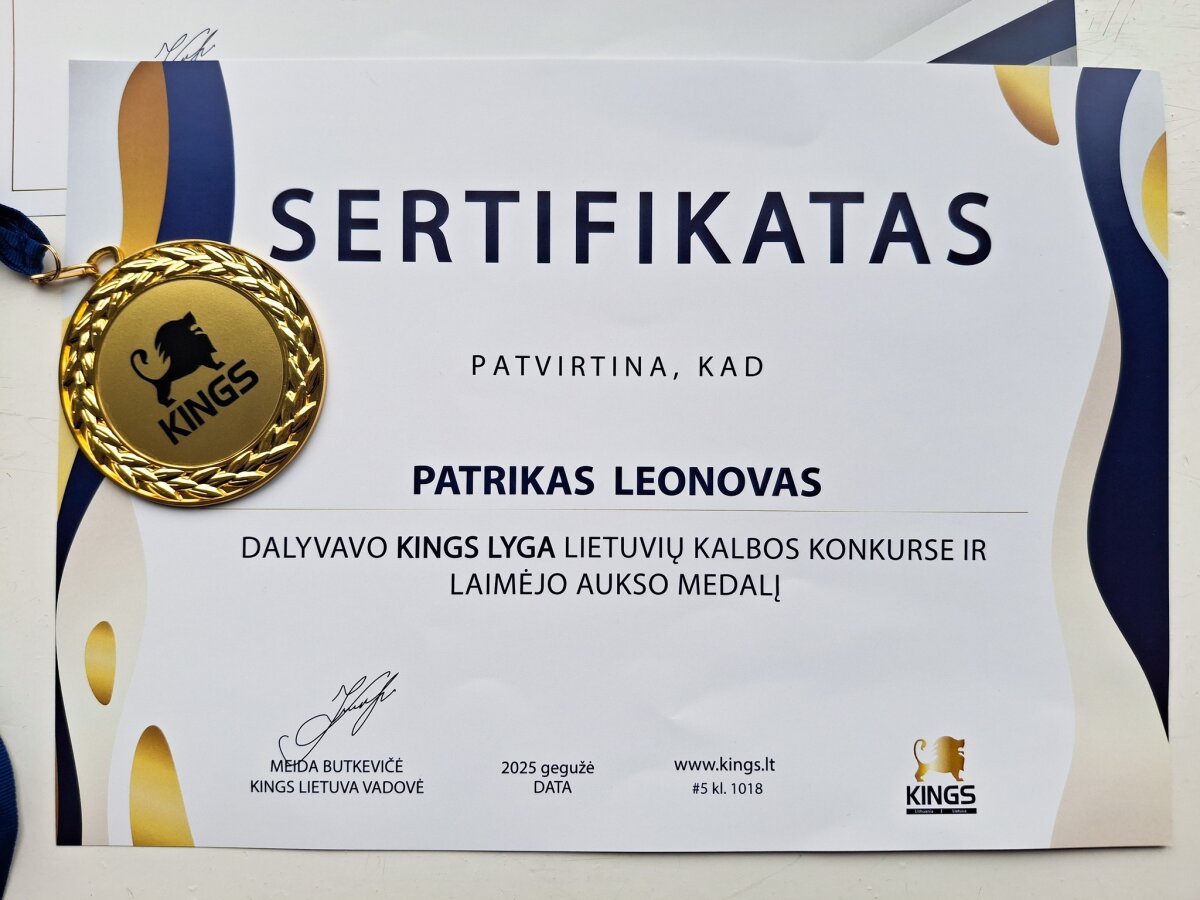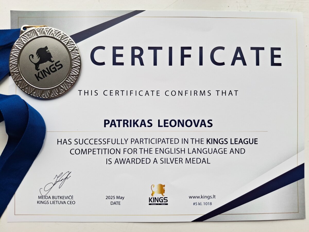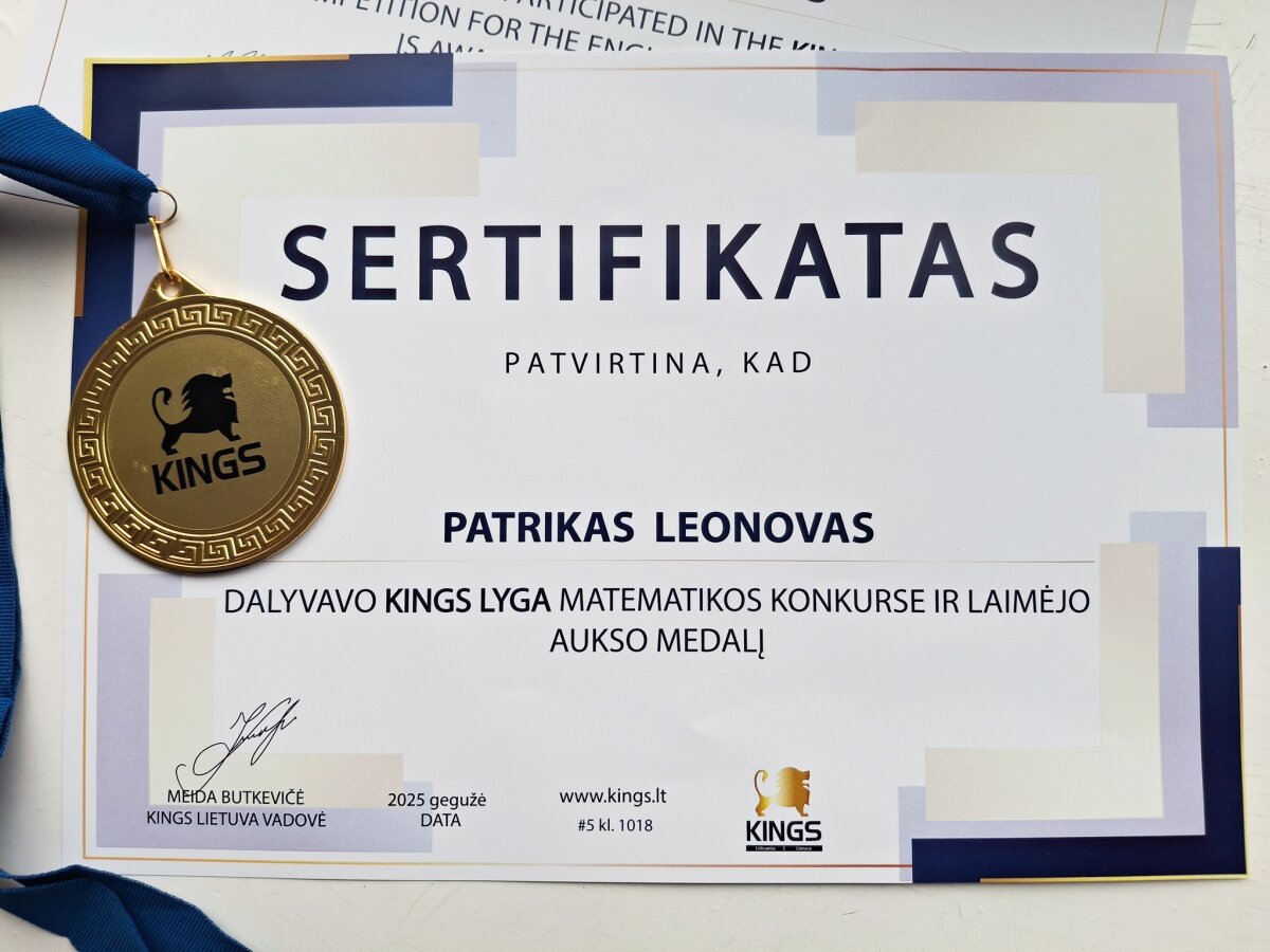 Sveikiname 6b klasės mokinį PATRIKĄ LEONOVĄ, puikiai pasirodžius KINGS lygos olimpiadose.