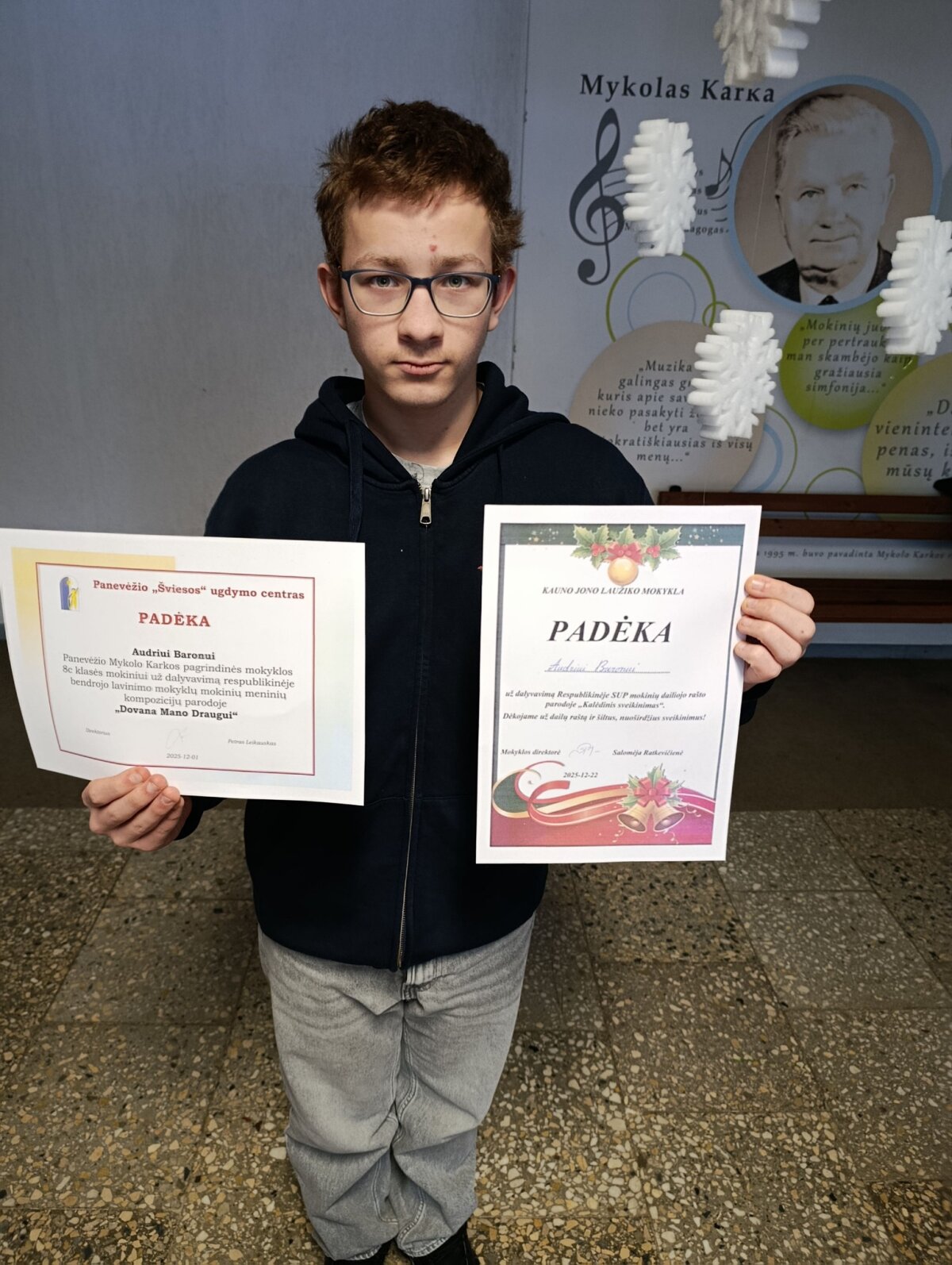 Audrius Baronas, 8c klasės mokinys, besimokantis Panevėžio Mykolo Karkos pagrindinėje mokykloje, šiais mokslo metais sudalyvavo dviejuose konkursuose: respublikinėje bendrojo