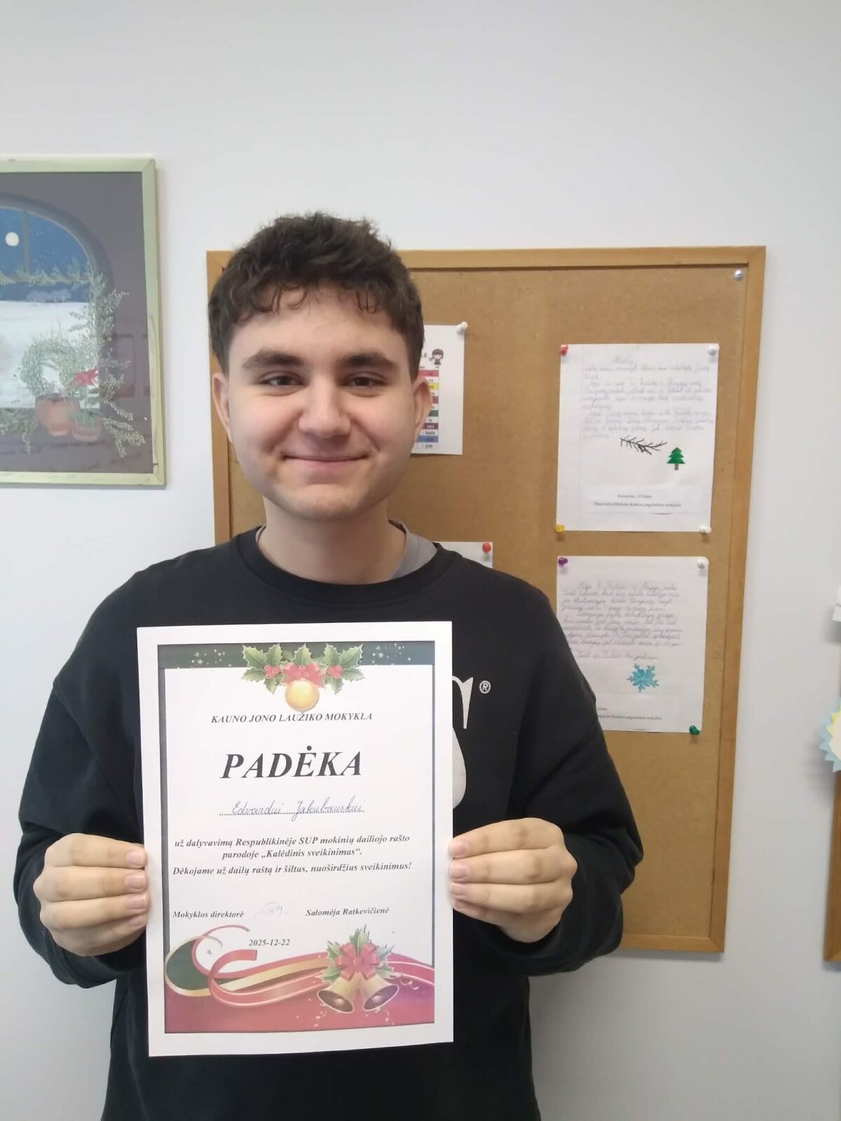 Dešimtokas Edvardas Jakubauskas, taip pat karkietis, irgi dalyvavo respublikinėje dailaus rašto parodoje.