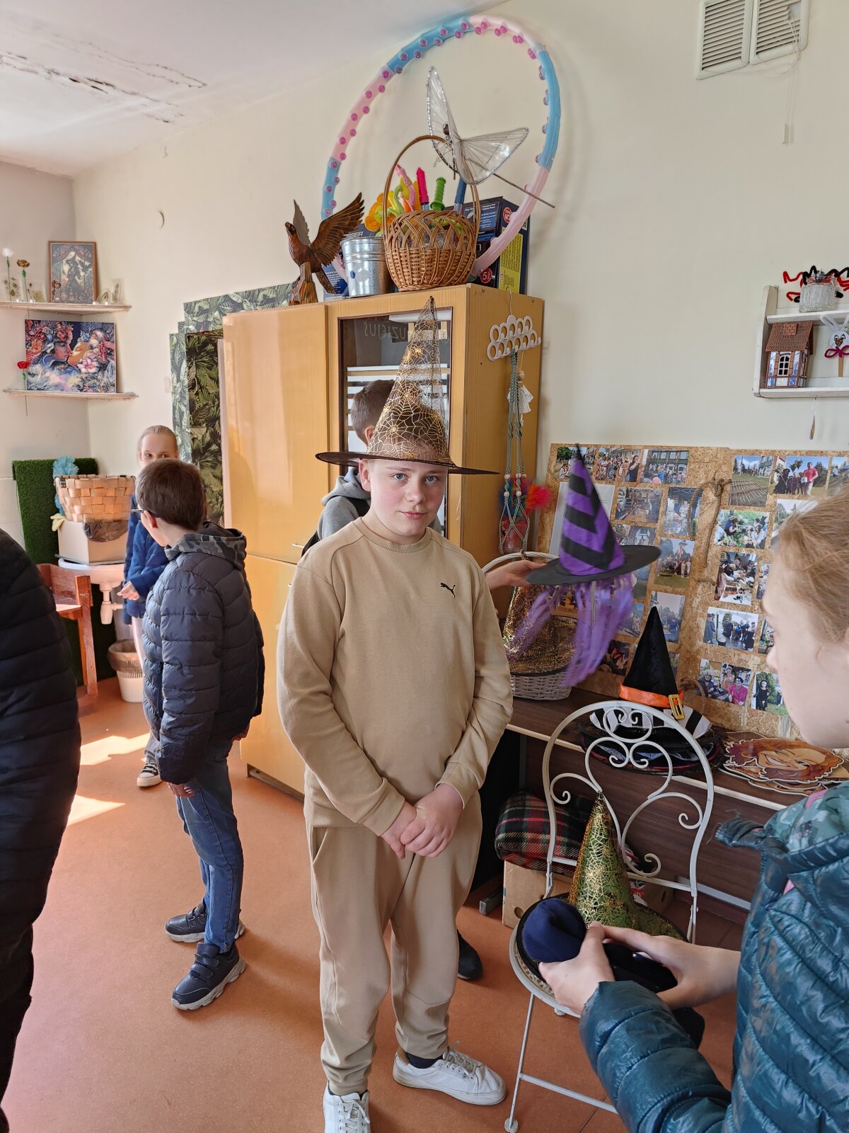 Utenoje. Šis Aukštaitijos miestas keliais šimtmečiais vyresnis už mūsų miestą, įsikūręs vaizdingiausioje vietoje. Ten ir keliavo mūsų mokyklos keliauninkai balandžio 29 dieną. Utenos kraštotyros muziejuje susipažinę su daugiau negu 700 metų skaičiuojančio miesto istorija ir kartu su muziejininke pasivaikščioję po miesto senamiestį, kuriame įsikūręs ir ant trakto (dabartinės magistralės, tik tada ten važinėjo arkliais traukiamos karietos, o ne automobiliai) labai reikalingas buvęs senasis pašto punktas su arklidėmis, svečių namais ir pašto pastatu. Už miesto, Pačkėnuose įsikūręs Raganų muziejus pakvietė keliauninkus ne tik susipažinti su 100 ten gyvenančių raganaičių, bet ir smagiai pasižaisti - šluotmūšį, domino, pasvaidyti žiedų. O šauniausieji, rungčių nugalėtojai, iš Raganų muziejaus darbuotojų gavo saldžių prizų. O kai pilvuose pasidarė labai labai saldu, pasukome į Saldutiškį. Keliaujant link šio miestelio, miške įsikūręs Triušiukų slėnis. Jame gyvena ne tik įvairiausių rūšių triušiukai, bet ir alpakos, asiliukai, poniai ir daug daug kitų gyvūnų. Mėginome suskaičiuoti - pasimetėme tarp skaičių. Teks dar kartą ten apsilankyti.