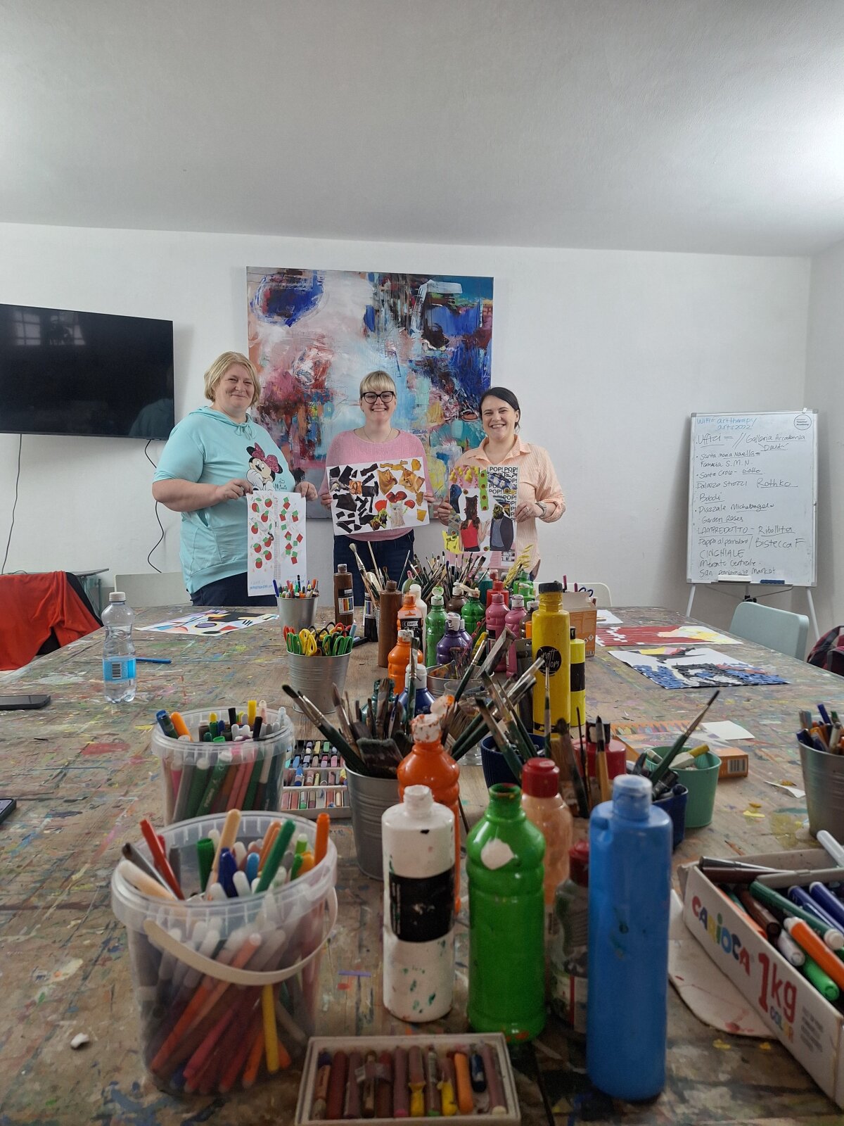 Mokymų programoje netrūko ir praktinių veiklų. Dalyvės išbandė intuityvaus piešimo metodus, analizavo spalvų ir emocijų ryšį, dalyvavo kūrybinio rašymo ir teatro užsiėmimuose. Taip pat buvo nagrinėjamos tokios temos kaip sąmoningas fotografavimas, savęs pažinimas, pozityvaus mąstymo ugdymas, meno integravimas į kasdienį ugdymo procesą.