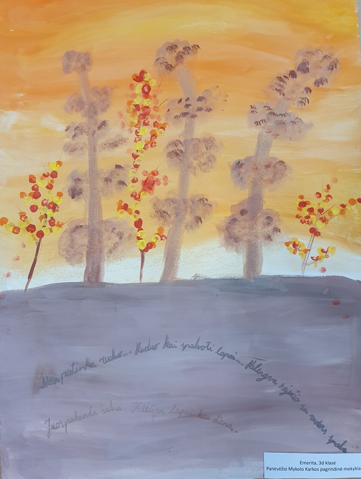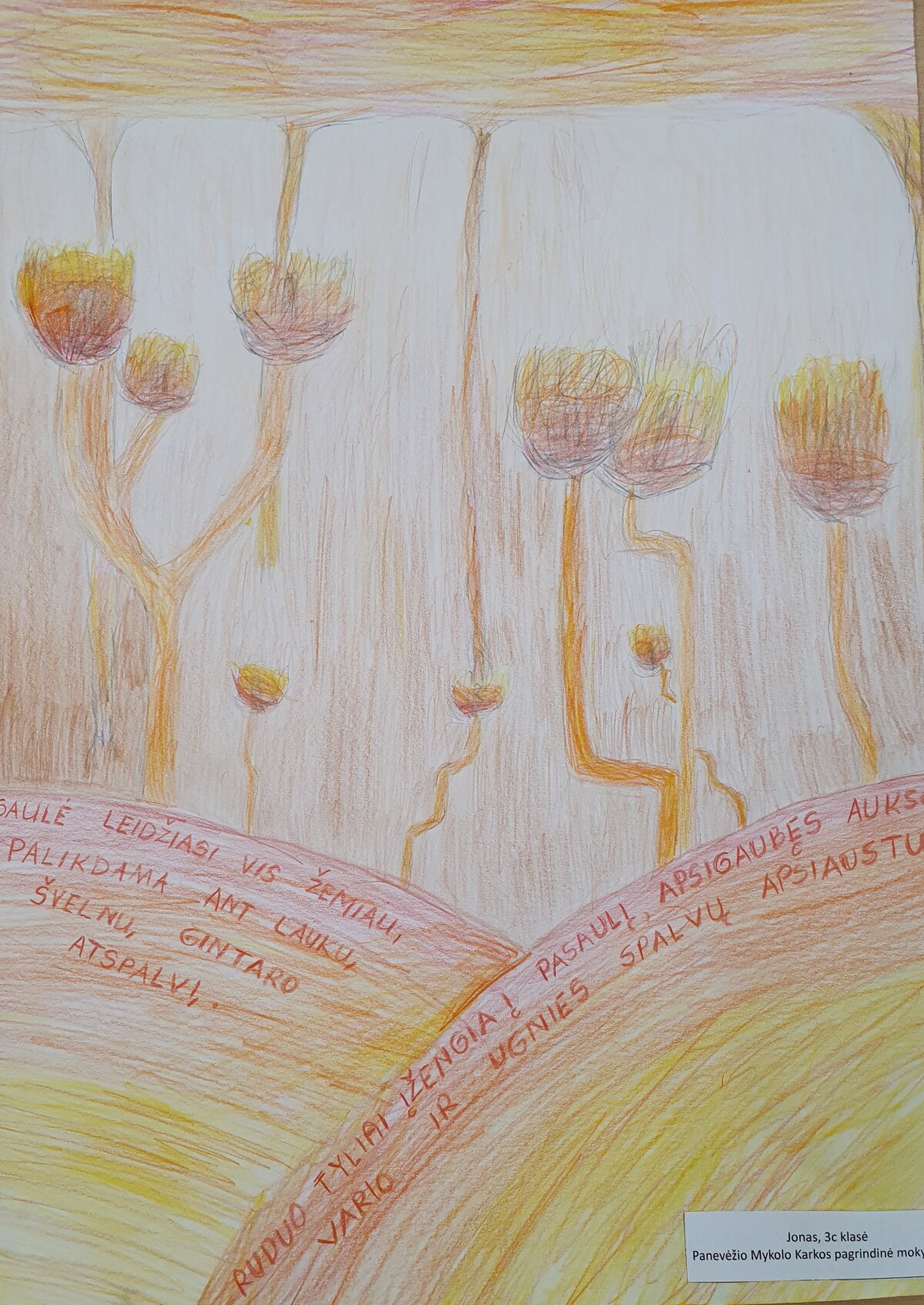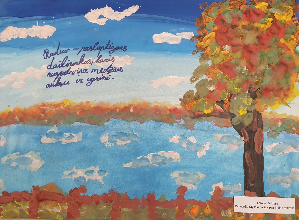 Įkvėpti šio žymaus lietuvių menininko ir kompozitoriaus darbų, trečiokai stengėsi pažvelgti į rudens gamtos grožį kūrybingomis akimis. Mokiniai interpretavo rudens nuotaikas per M. K. Čiurlioniui būdingą simbolizmą, spalvų dermę ir paslaptingą atmosferą.