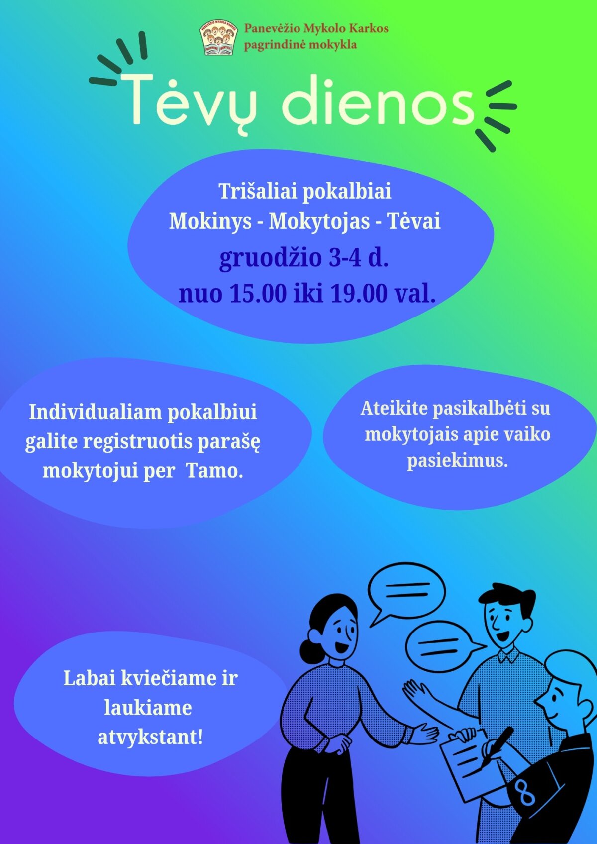 Laukiame mokinių tėvų trišaliuose pokalbiuose.