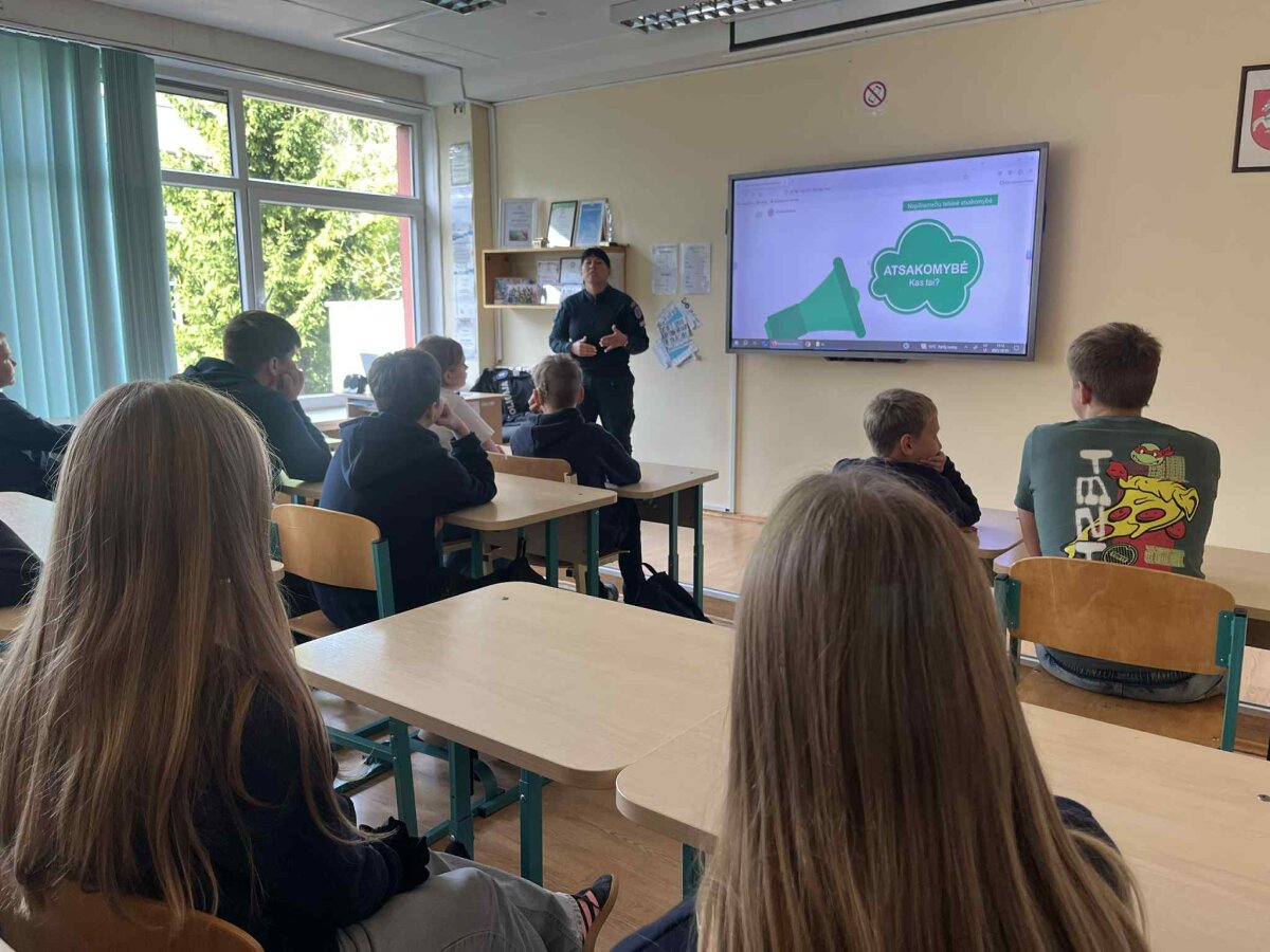 Išsamiai papasakojus ir pateikus gyvenimiškų pavyzdžių tapo aišku, kad atsakomybė – tai ne tik taisyklės ir įstatymai, bet ir gebėjimas numatyti savo veiksmų pasekmes. Kartu aptarė pačias įvairiausias situacijas: nuo elgesio mokykloje ir už jos ribų iki saugumo internete. Policijos atstovės pateiktos gyvenimiškos situacijos padėjo 7c klasės mokiniams suprasti, kad atsakingumas prasideda nuo sąmoningumo ir pagarbos kitiems.