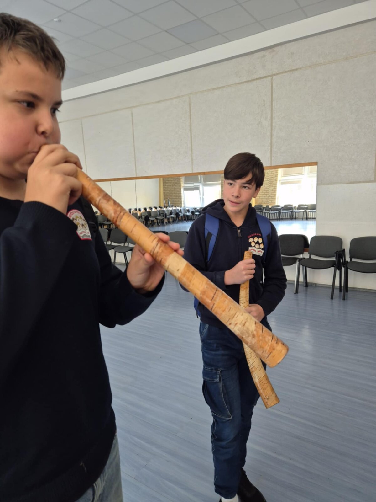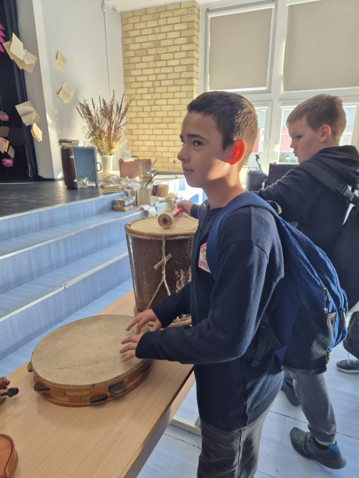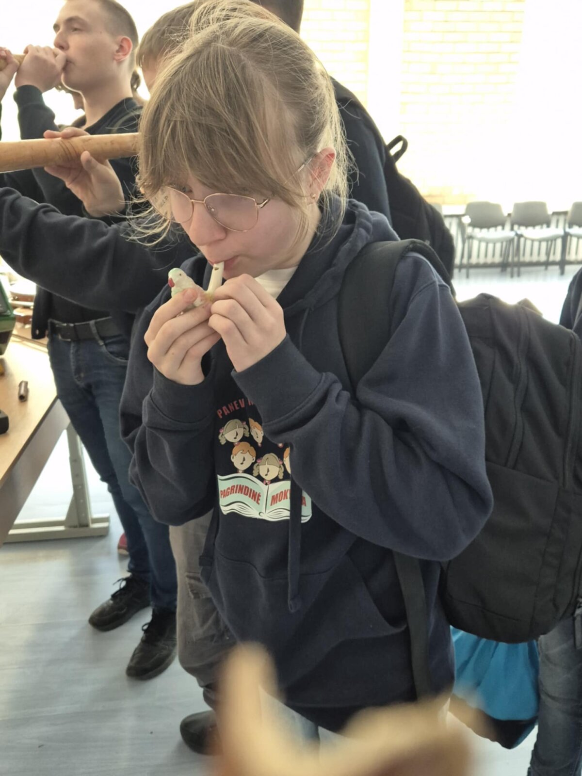 Dar įdomiau buvo tada, kai Lukas Simsonas pristatė įvairius liaudies muzikos instrumentus. Salėje nuaidėjo ragų gausmas, būgnų ritmai, kanklių skambesys, o kai kurie instrumentai net pamėgdžiojo paukščių čiulbėjimą! Mokiniai klausėsi su dideliu susidomėjimu, kai etnomuzikologas rodė, kaip senieji lietuviški garsai gali papasakoti ištisas istorijas be žodžių.