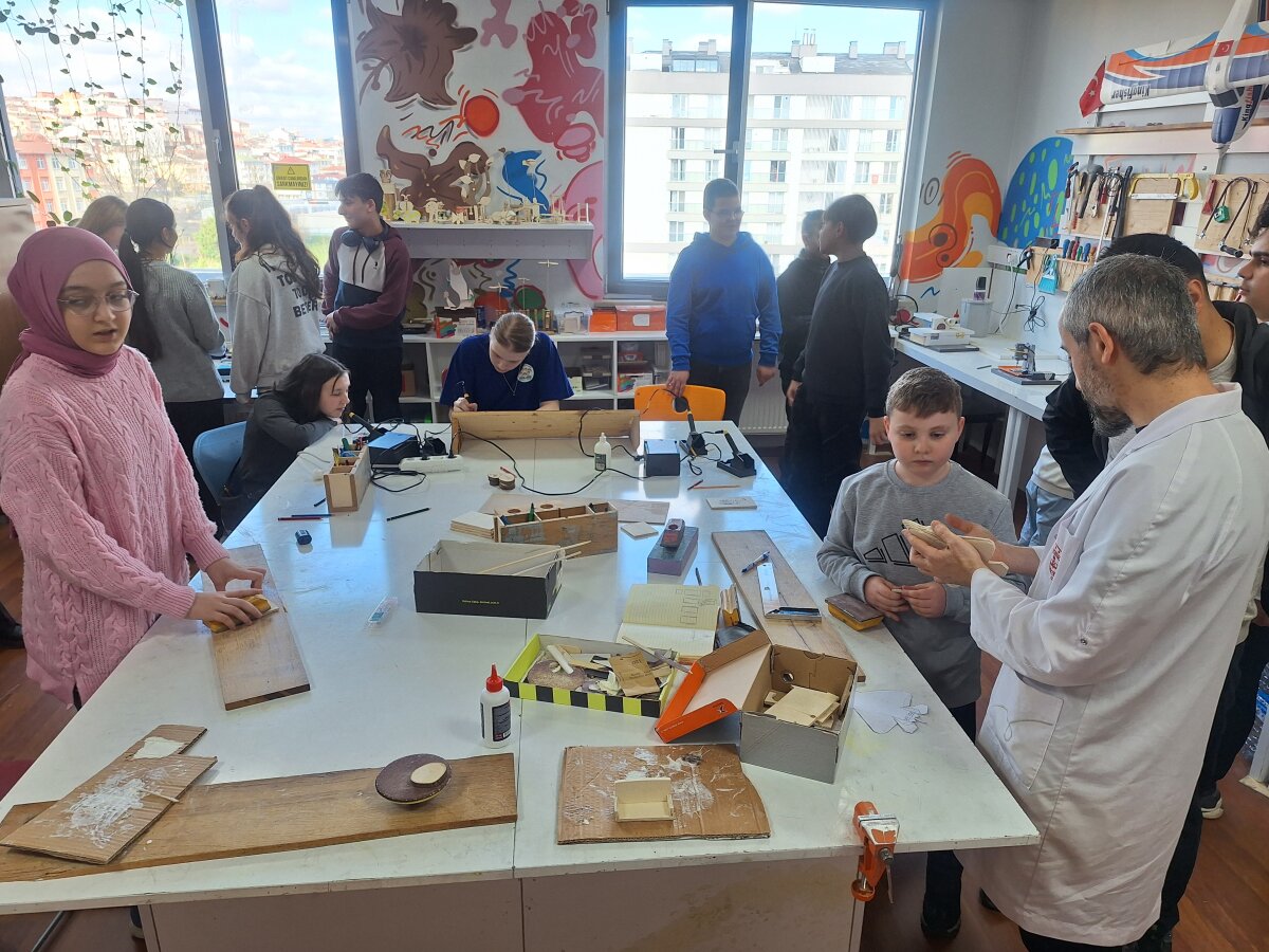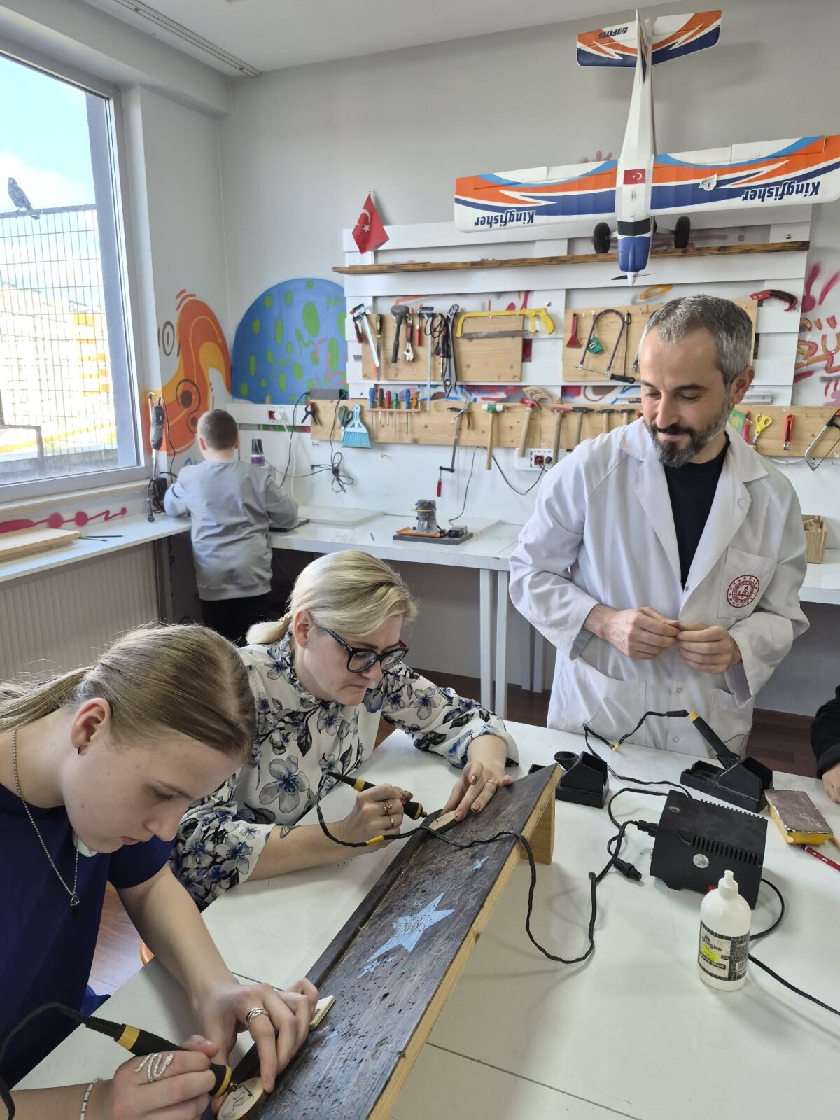 Ne mažiau įdomios buvo kūrybinės ir praktinės dirbtuvės. Mokiniai išbandė tradicinį turkišką marmuravimo (ebru) meną, dalyvavo keramikos bei medžio dirbtuvėse, kūrė trumpametražį filmą naudodami žaliąjį ekraną. Muzikos užsiėmime mokėsi kūno perkusijos, o literatūros ir meno veiklos skatino kūrybiškumą bei komandinį darbą. Matematikos dirbtuvėse „Geometrija architektūros darbuose“ mokiniai tyrinėjo, kaip matematiniai principai atsiskleidžia istoriniuose statiniuose.
