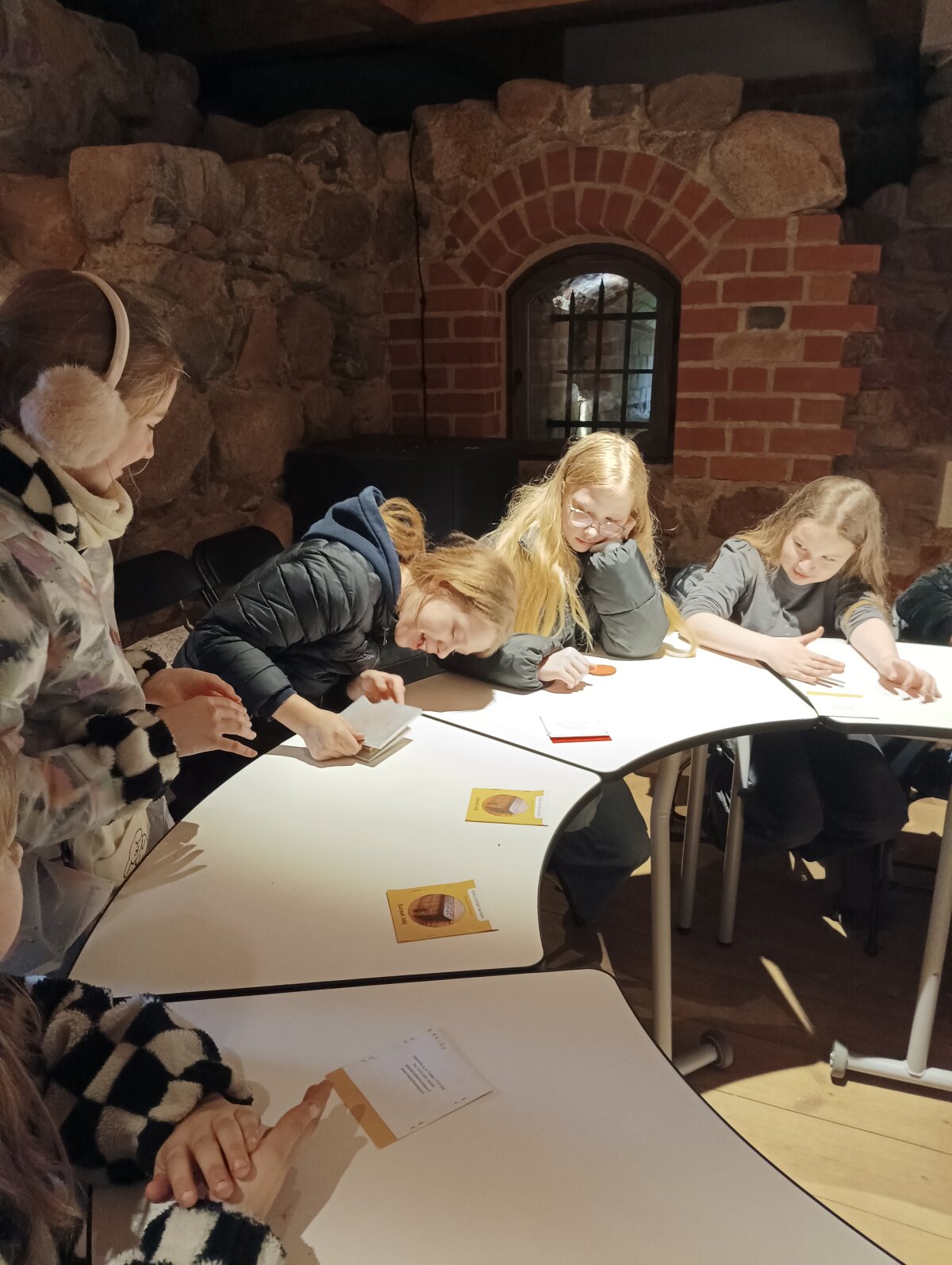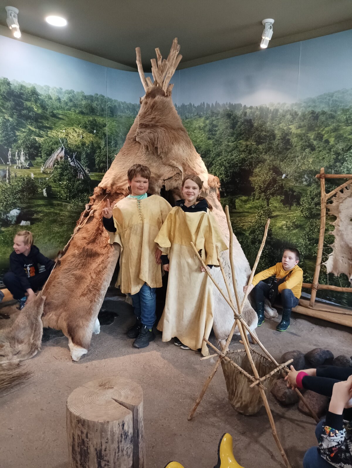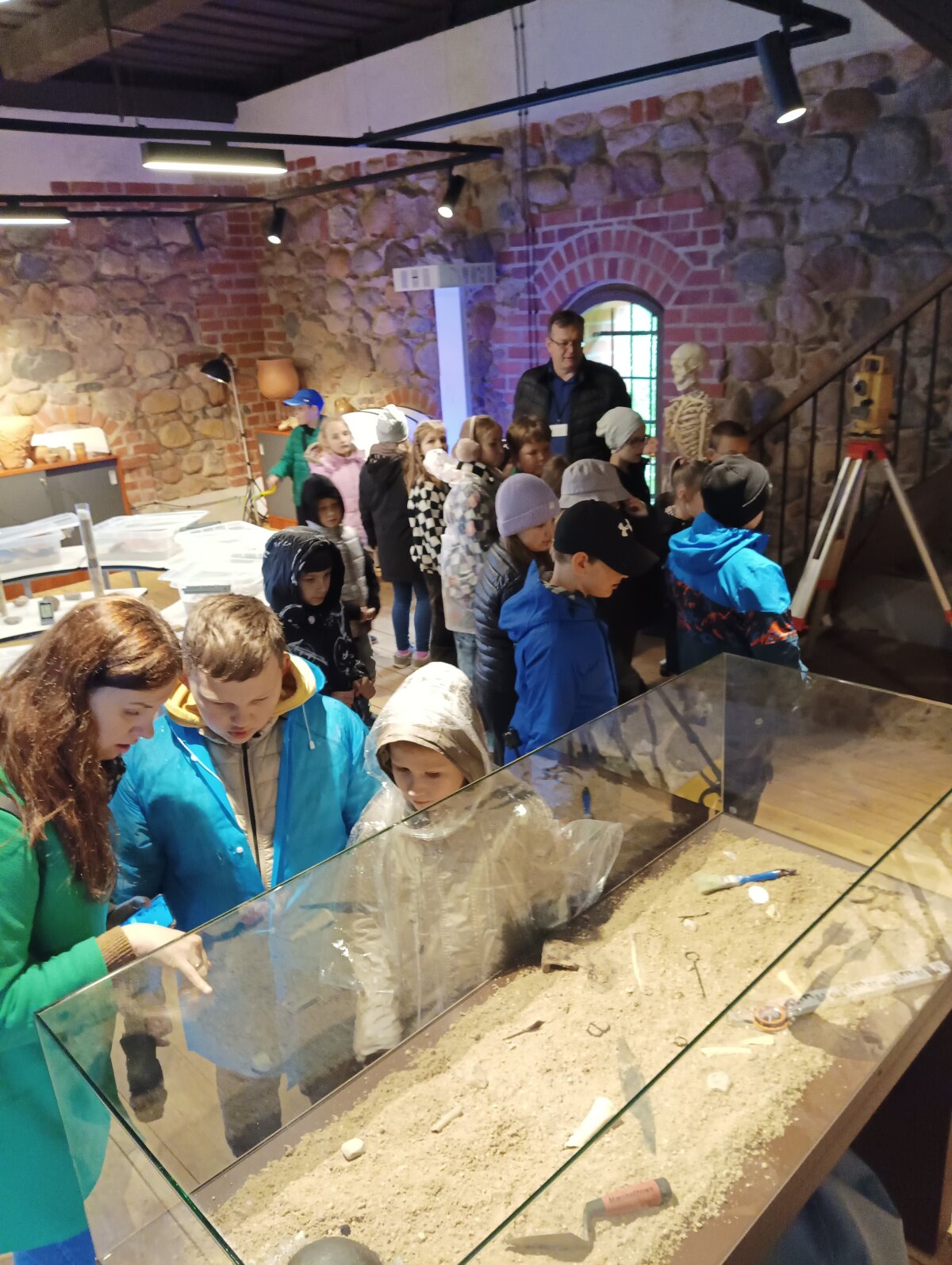 Vėliau pasukome į pirmąją Lietuvos pagoniškąją sostinę Kernavę. Archeologiniame vietovės muziejuje dalyvavome edukacijoje ,,Kaip žmonės senovėje gyveno“ , kur pasakojimo, bandymų ir žaidimų pagalba keliavome į tolimą praeitį – akmens amžių. Sužinojome kada pirmieji žmonės pasirodė Lietuvos teritorijoje, kaip jie gyveno, ką rankiojo ir kaip medžiojo. „Pagyvenome“ priešistorės palapinėje, atradome iš ko buvo gaminami įrankiai, apranga ir statomi būstai.