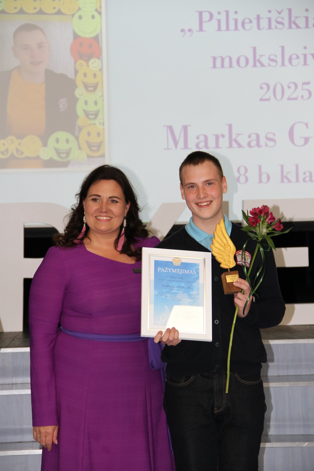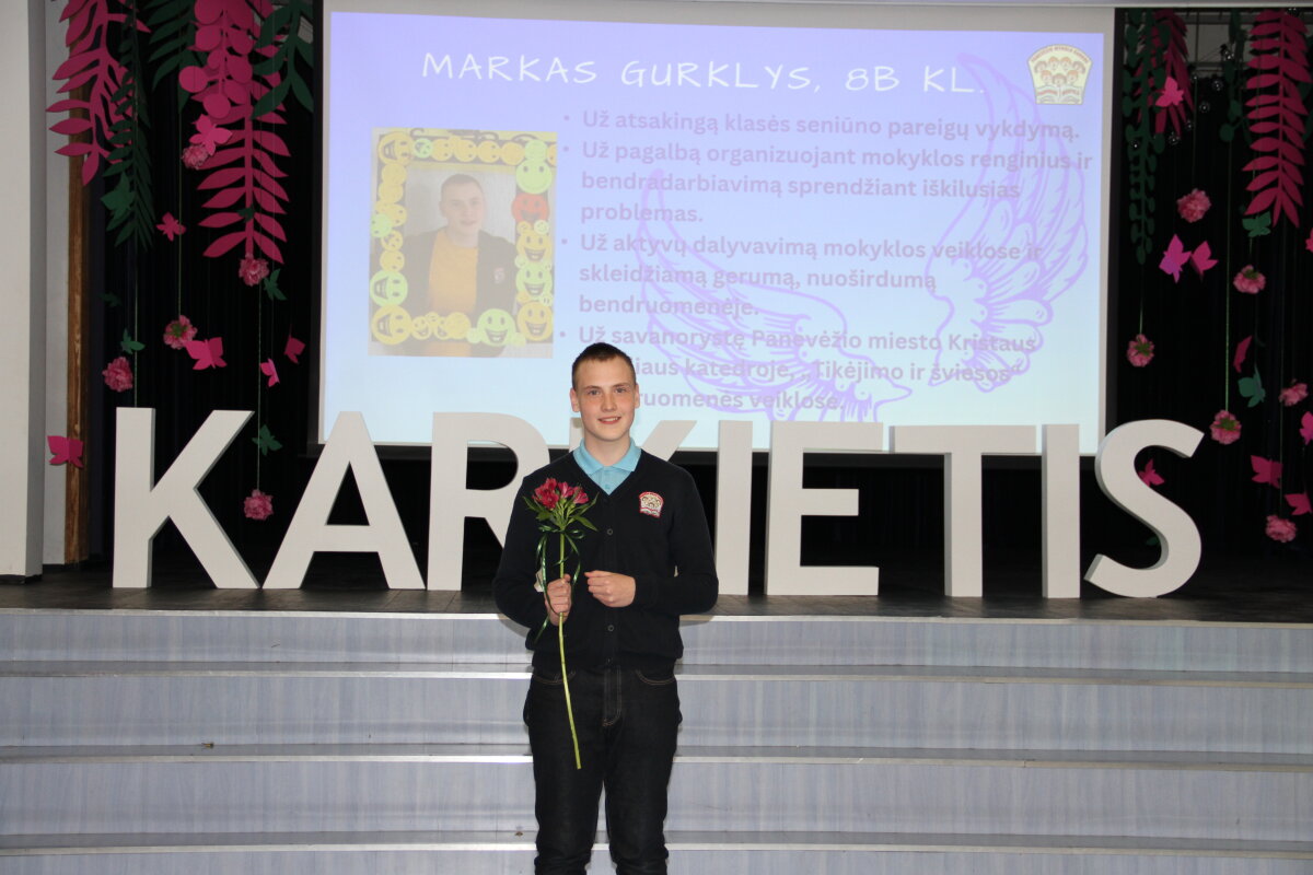 Markas Gurklys (8b kl.) – atsakingas seniūnas, aktyvus bažnyčios ir miesto renginių dalyvis, skleidžiantis nuoširdumą.