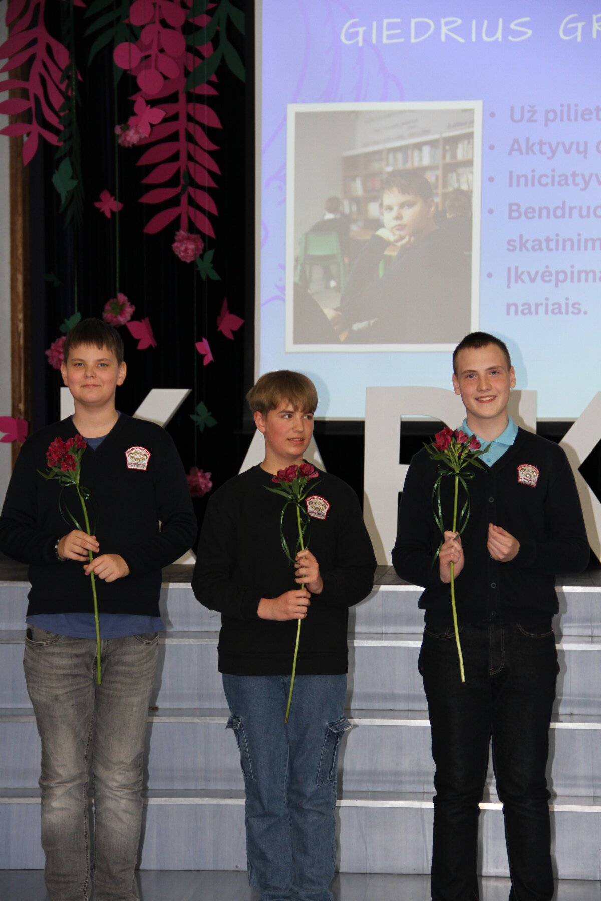 Giedrius Gritėnas (5b kl.) – aktyvus renginių organizatorius, nuolat įsitraukiantis į pagalbos ir kūrybines veiklas.