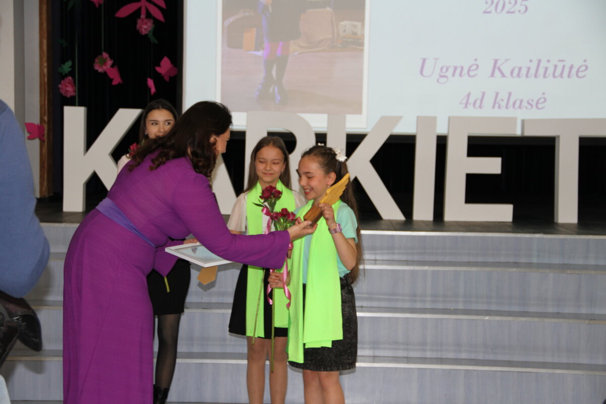 Ugnė Kailiūtė (4d kl.) – puikių rezultatų mokinė, laimėjusi prizines vietas miesto ir respublikos konkursuose bei olimpiadose.