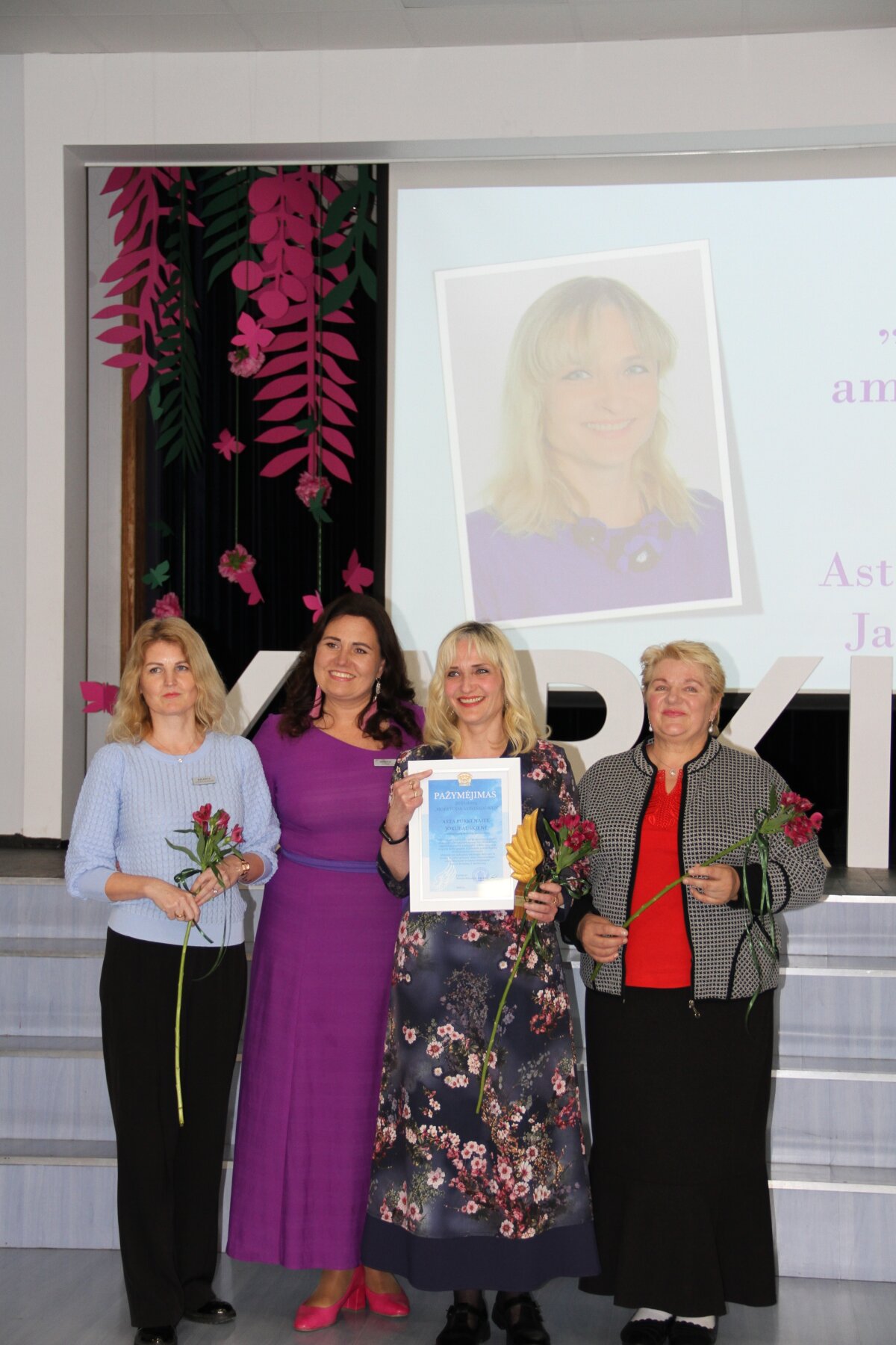 Asta Purkėnaitė-Jokubauskienė – pradinio ugdymo mokytoja, su mokiniais dalyvaujanti konkursuose, organizuojanti renginius, stovyklas.