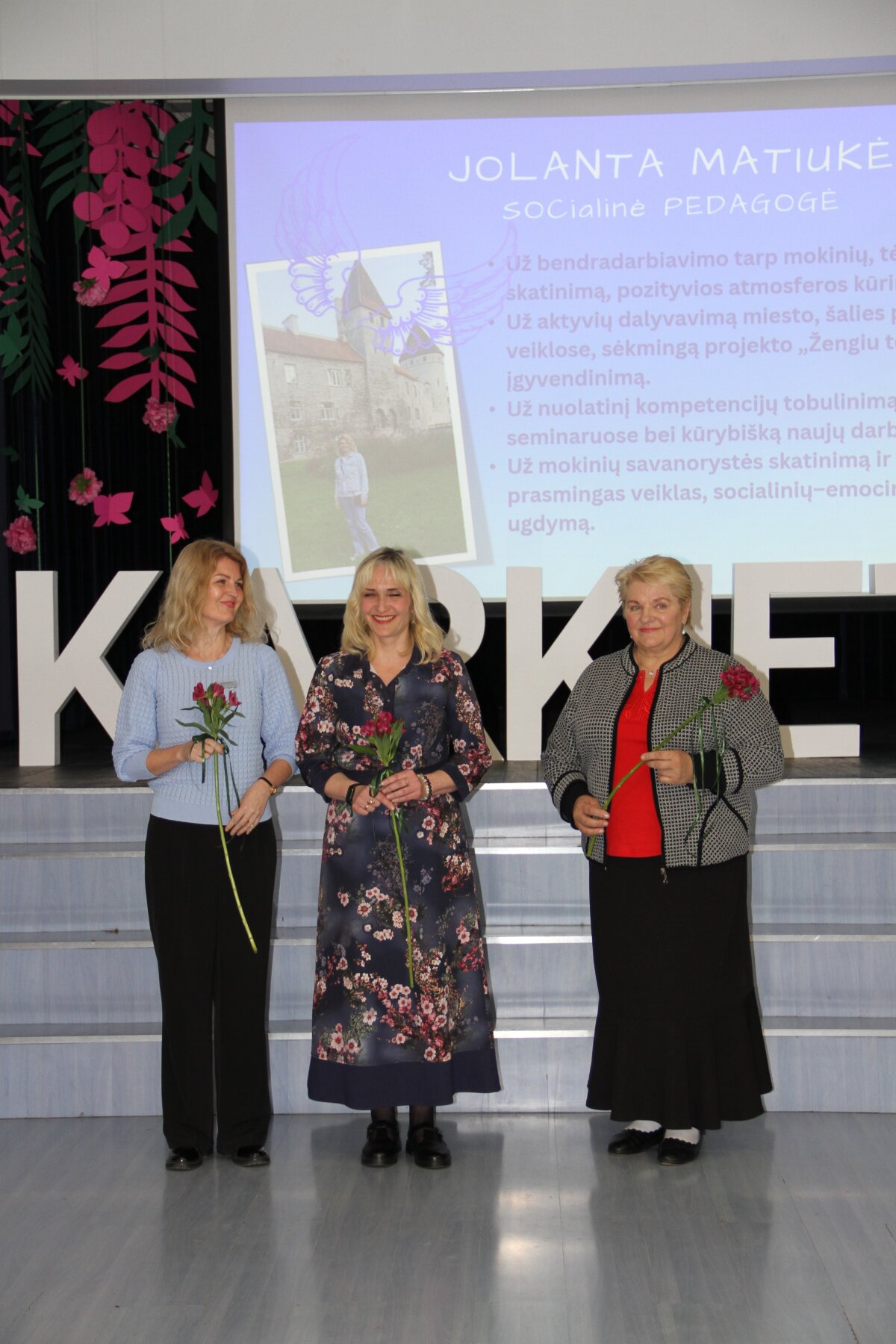 Panevėžio miesto savivaldybės mero pavaduotojas Deividas Labanavičius, Švietimo skyriaus vyriausioji specialistė Aušra Gabrėnienė, bei „Metų karkiečio“ konkurso idėjos autorė, renginio ambasadorė – buvusi lietuvių kalbos mokytoja Loreta Švarlienė.