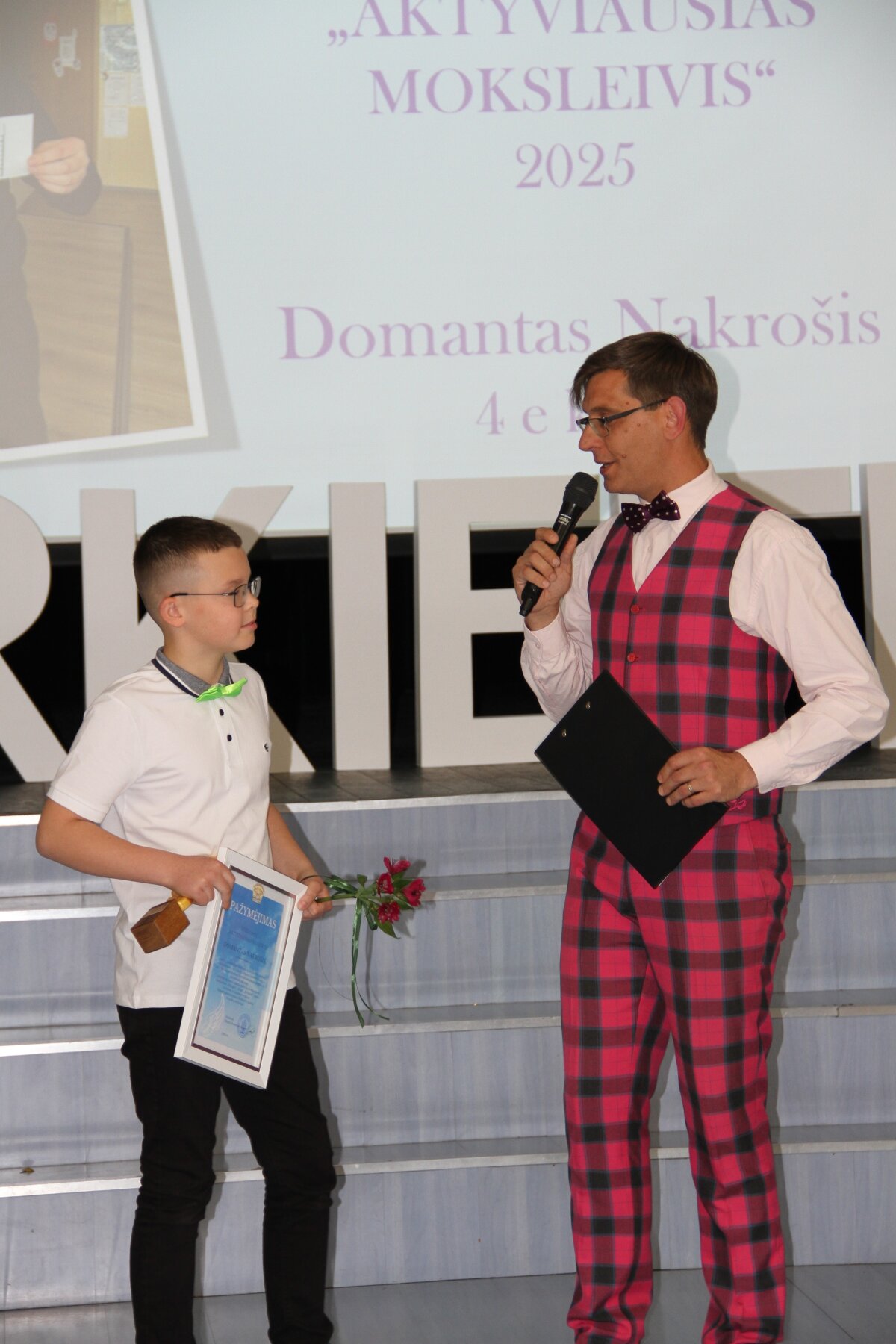 Domantas Nakrošis (4e kl.) – įvairiapusis mokinys, aktyviai dalyvaujantis akademinėje, sportinėje ir meninėje veikloje.