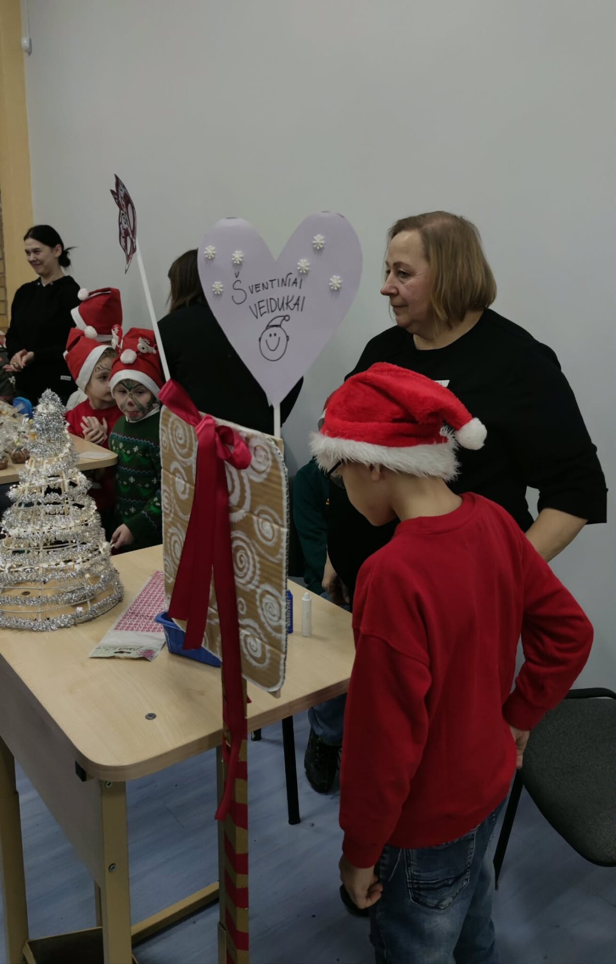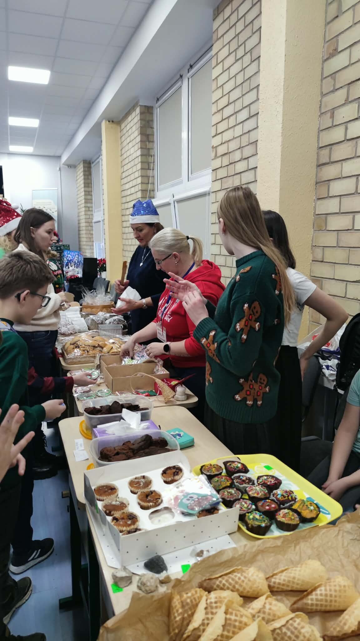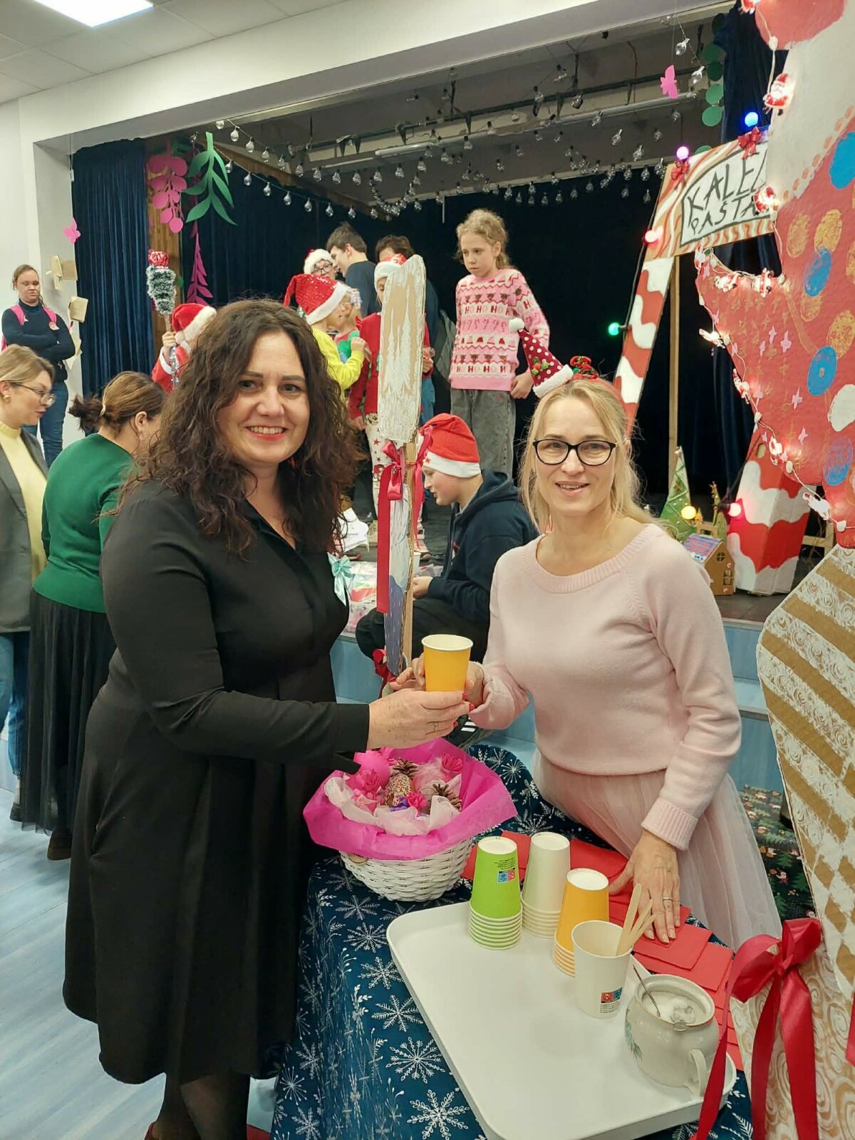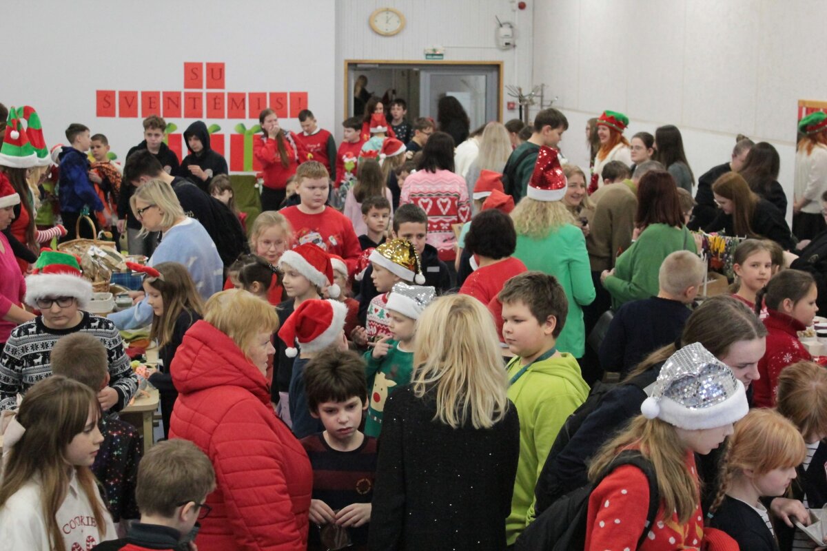 Į šventę susirinko visa mokyklos bendruomenė: vieni atėjo pirkti ar parduoti, kiti – pabendrauti, pasivaišinti arbata, pasigaminti kalėdinį žaisliuką kūrybinėse dirbtuvėlėse ar padeklamuoti eilėraštį Kalėdų Seneliui. Mažųjų ir didžiųjų veidus puošė linksmi piešiniai, o šventinę nuotaiką dar labiau sustiprino Kalėdinio pašto nykštukai, dalinę laiškus su šiltais sveikinimais ir linkėjimais.