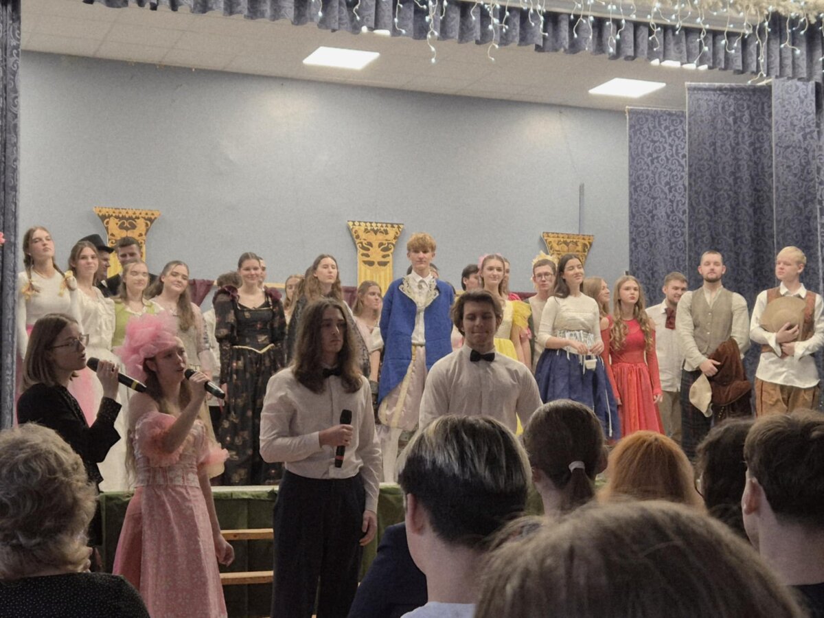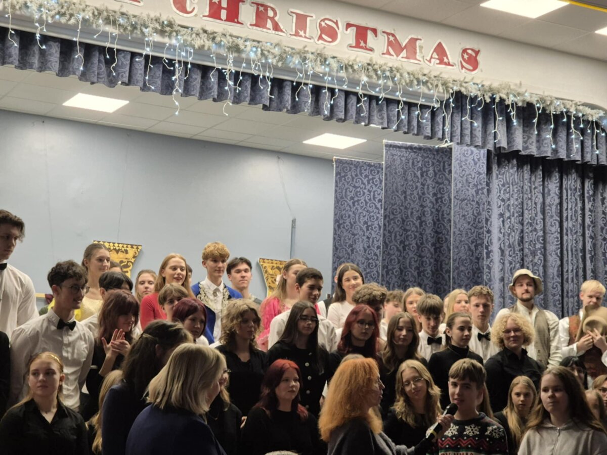Gruodžio 16 dieną 8c klasės mokiniai kartu su anglų kalbos mokytoja Vaida apsilankė Panevėžio 5-ojoje gimnazijoje ir dalyvavo jau 38-ąjį kartą vykstančiame tradiciniame renginyje „Angliškos Kalėdos“.