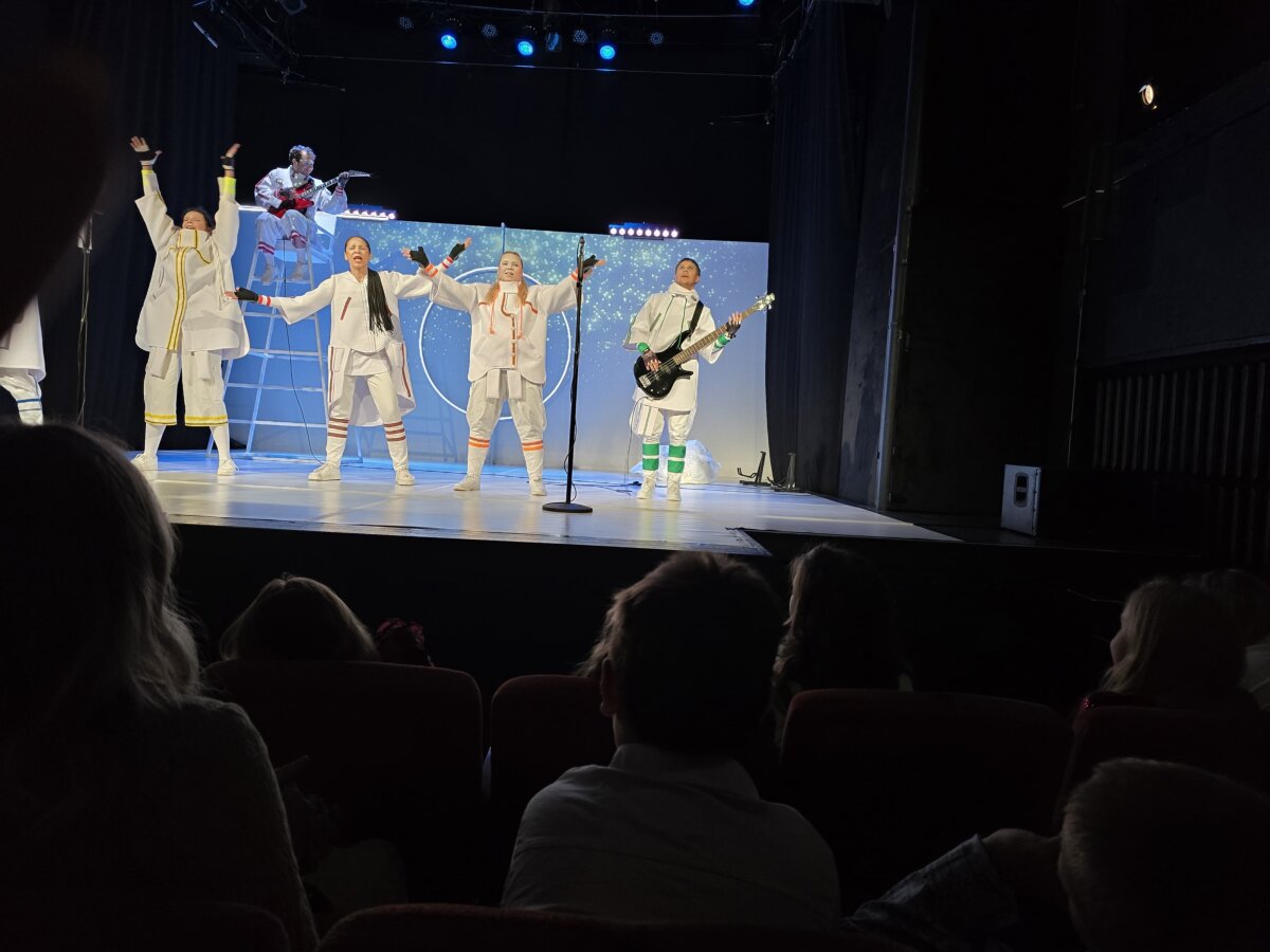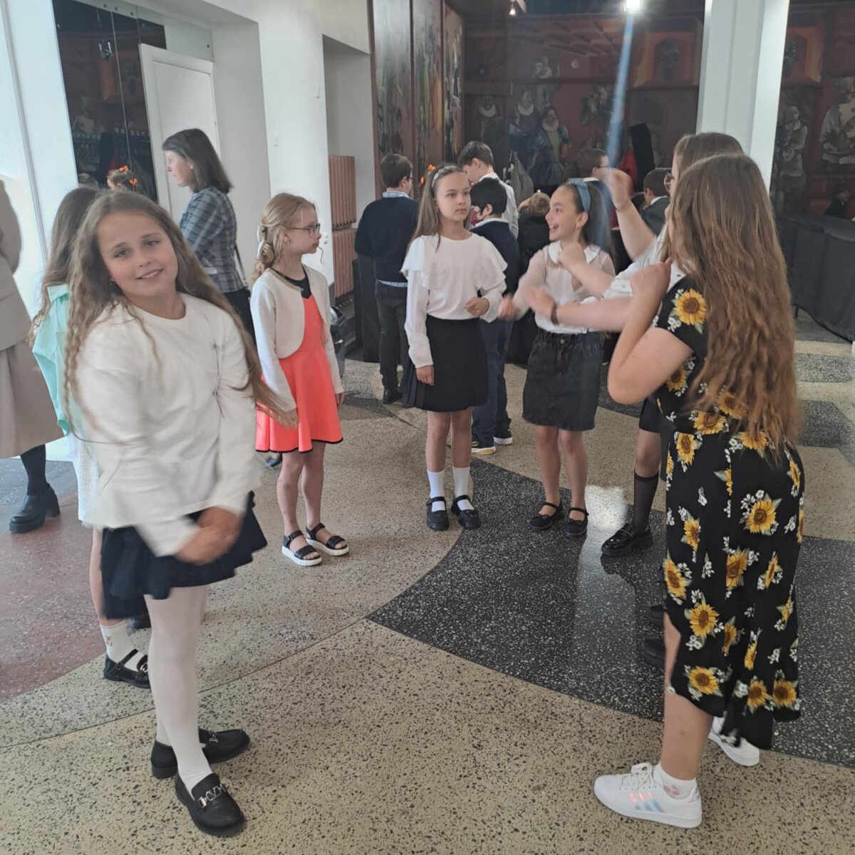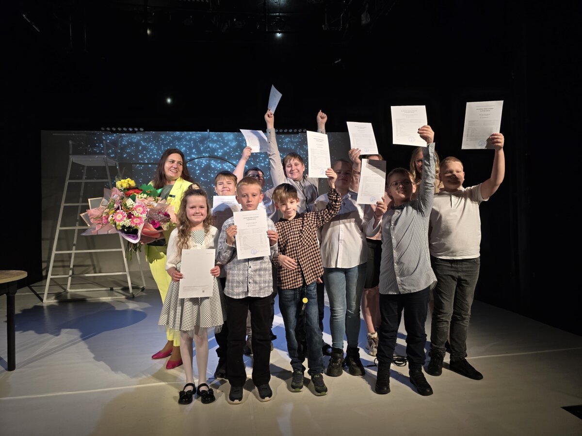 Po pamokos mokiniai kartu su mokytojomis išvyko į teatrą „Menas“, kur visi kartu žiūrėjo nuotaikingą spektaklį. O po jo laukė ypatinga akimirka – mokyklos direktorės sveikinimas, kuriuo ji iškilmingai pasveikino visus ketvirtokus su įgytu pradiniu išsilavinimu.