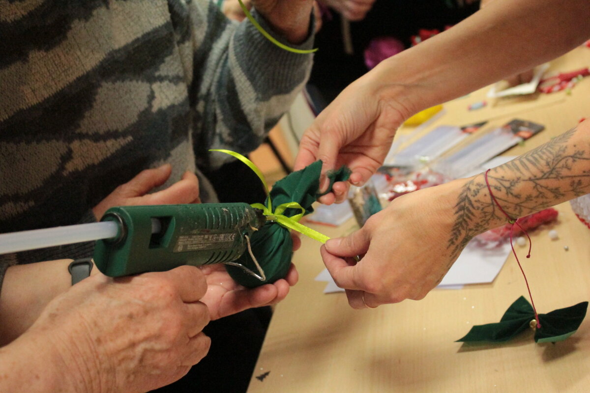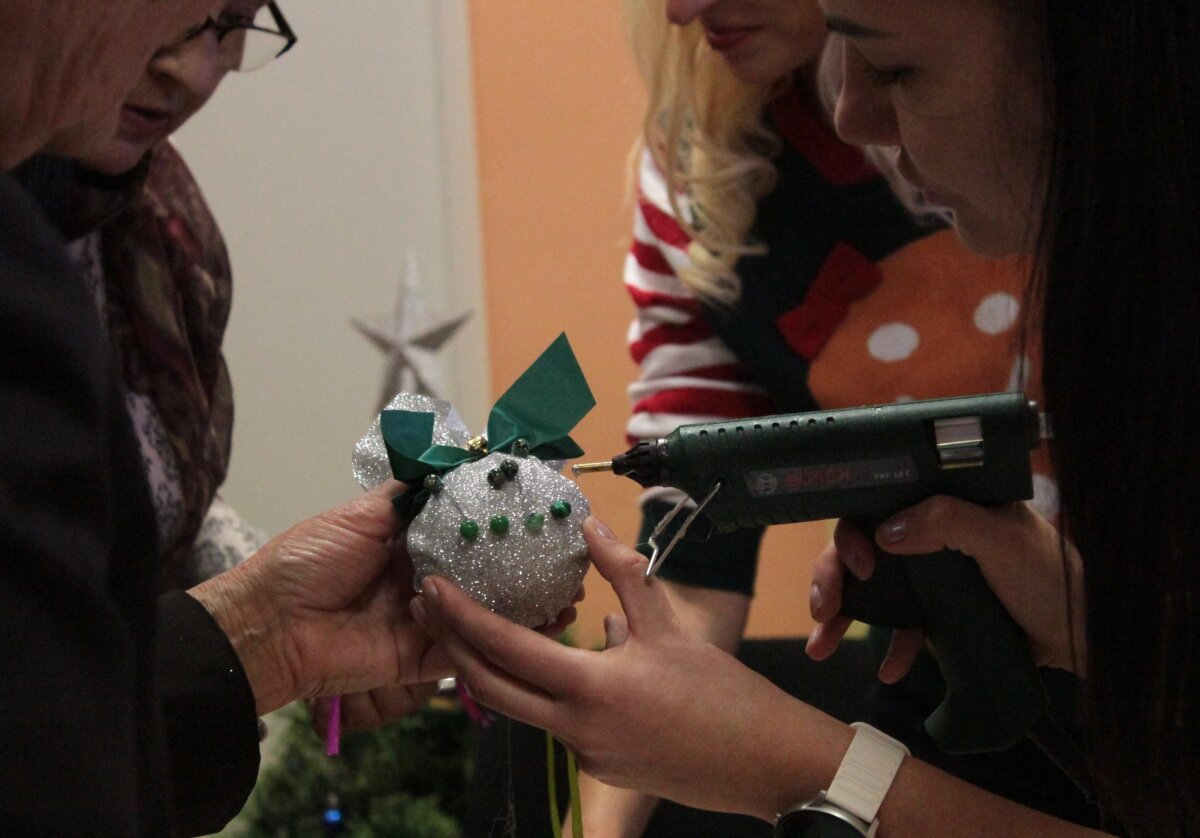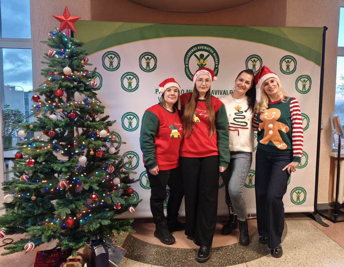 Mokinio padėjėjos Reda ir Karolina gruodžio 12 ir 16 dienomis lankėsi Panevėžio miesto savivaldybės Visuomenės sveikatos biure, kur vedė jaukią ir kūrybišką edukaciją „Kalėdinio eglutės žaisliuko gamyba“.