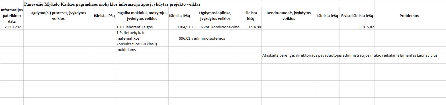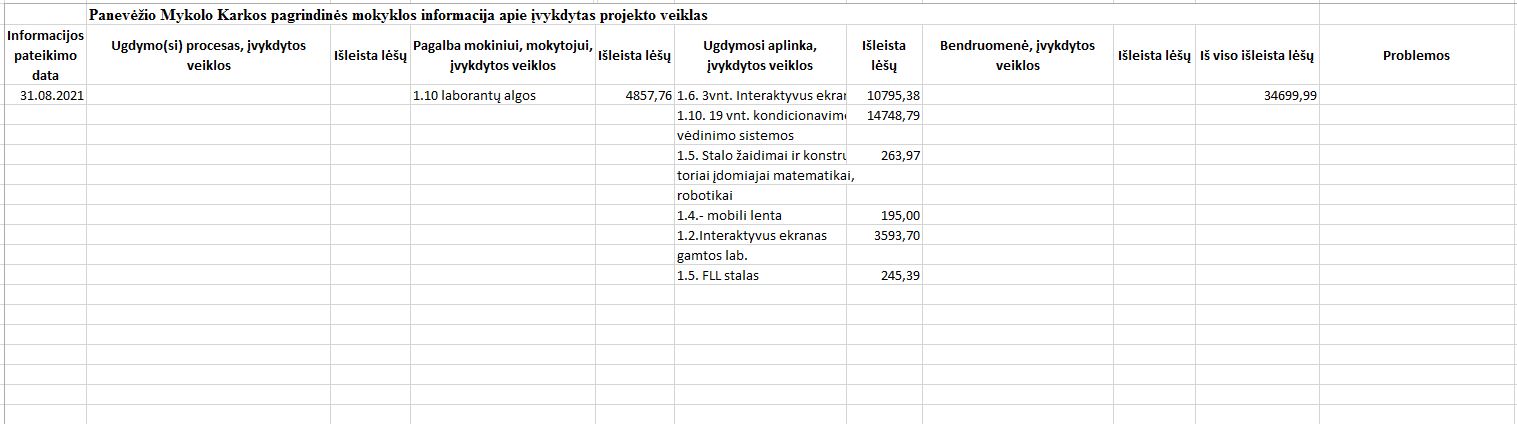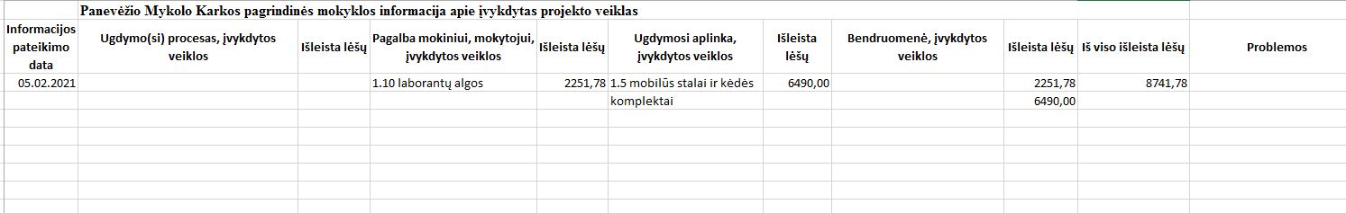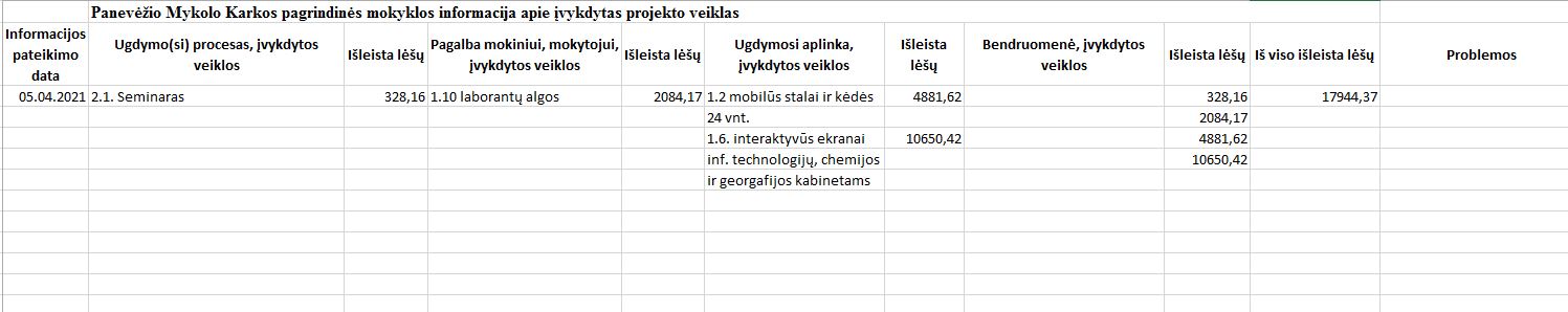 | Informacija apie įvykdytas projekto veiklas | ||||