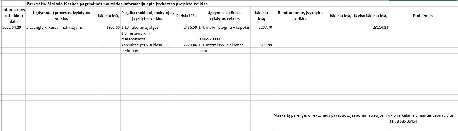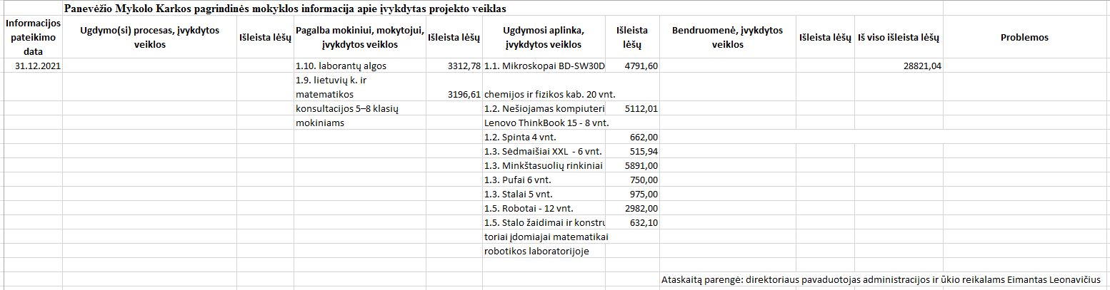 Straipsnis „Panevėžio Mykolo Karkos pagrindinės mokyklos direktorius: mūsų siekis – fizinė ir emocinė mokinių gerovė, siekiant savo svajonės“ laikraštyje „Panevėžio kraštas“, 2021-12-08